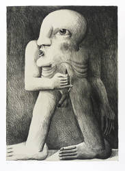 Horst Antes (*1936 Heppenheim - lebt und arbeitet in Karlsruhe, Berlin und Castellina in Chianti / Italien). Deutscher Maler, Grafiker und Bildhauer. Studierte Malerei 1957-59 bei HAP Grieshaber an der Akademie der Bildenden Künste Karlsruhe. Seit 1967 Professor für Malerei an der Akademie Karlsruhe. 1962 Villa Romana Florenz, 1963 Villa Massimo Rom. 1963 Ausstellung der ersten plastischen Kopffüßler-Figur. 1967 Metallplastiken zum Garten der sieben Denkmäler der Lüste anlässlich der Bundesgartenschau für den Botanischen Garten in Karlsruhe. 1968 Gastprofessur an der Hochschule für Bildende Künste Berlin. Seit 1983 Mitglied der Freien Akademie der Künste Hamburg. - Seine monolithisch wirkenden, oft gnomenhaft körperlosen Figuren weisen Ankläge von spätem Kubismus und Surrealismus auf.