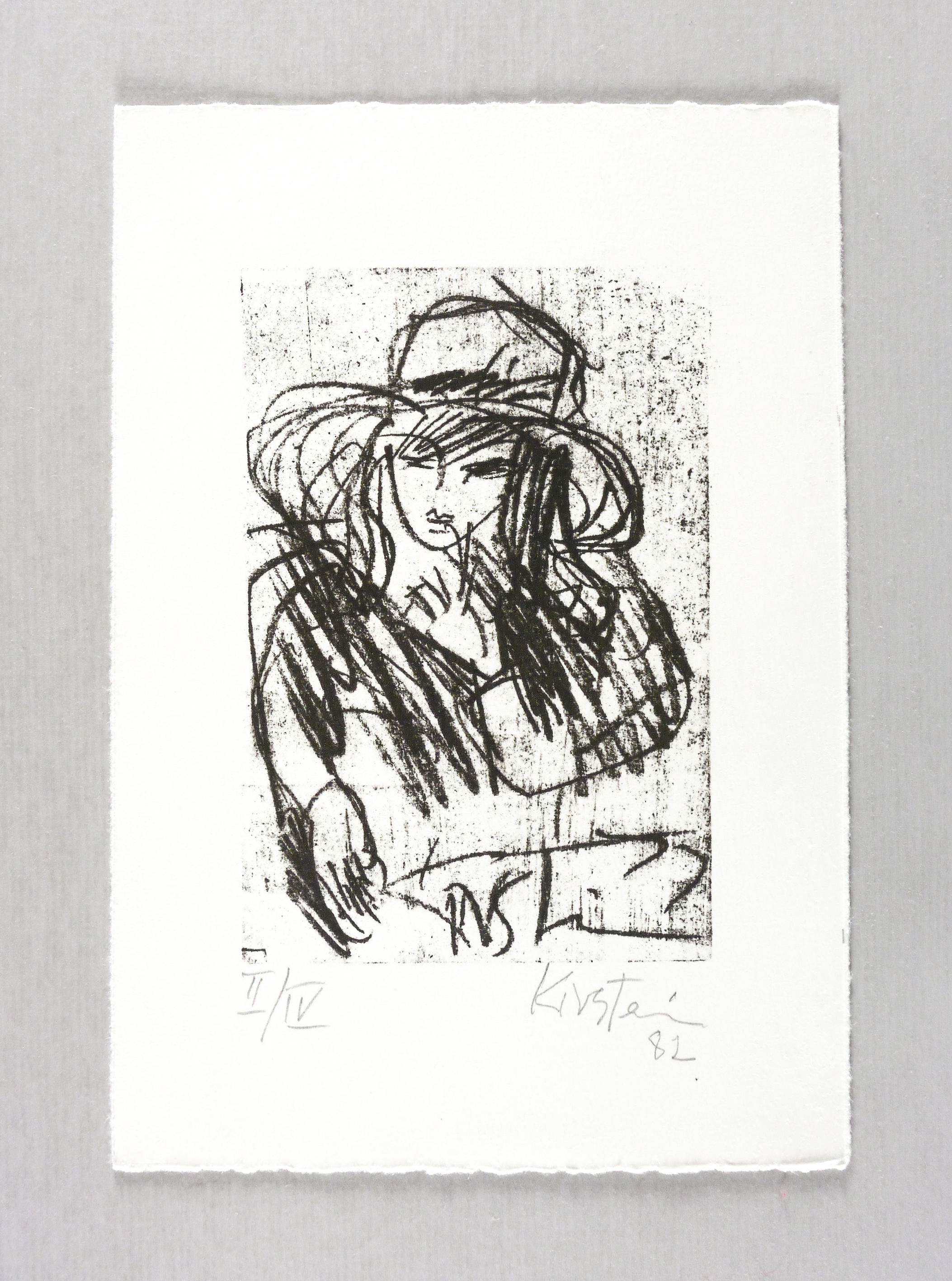 Rechts unten in Bleistift signiert und datiert: ″Kirstein 82″. Links Auflagenbezeichnung: ″II/IV″. – Lithografie, die im Zusammenhang der Mappe ″Mädchen″ entstand und als Exemplar einer sehr kleinen Auflage von nur 4 Blättern gedruckt wurde. – Sehr guter Zustand.