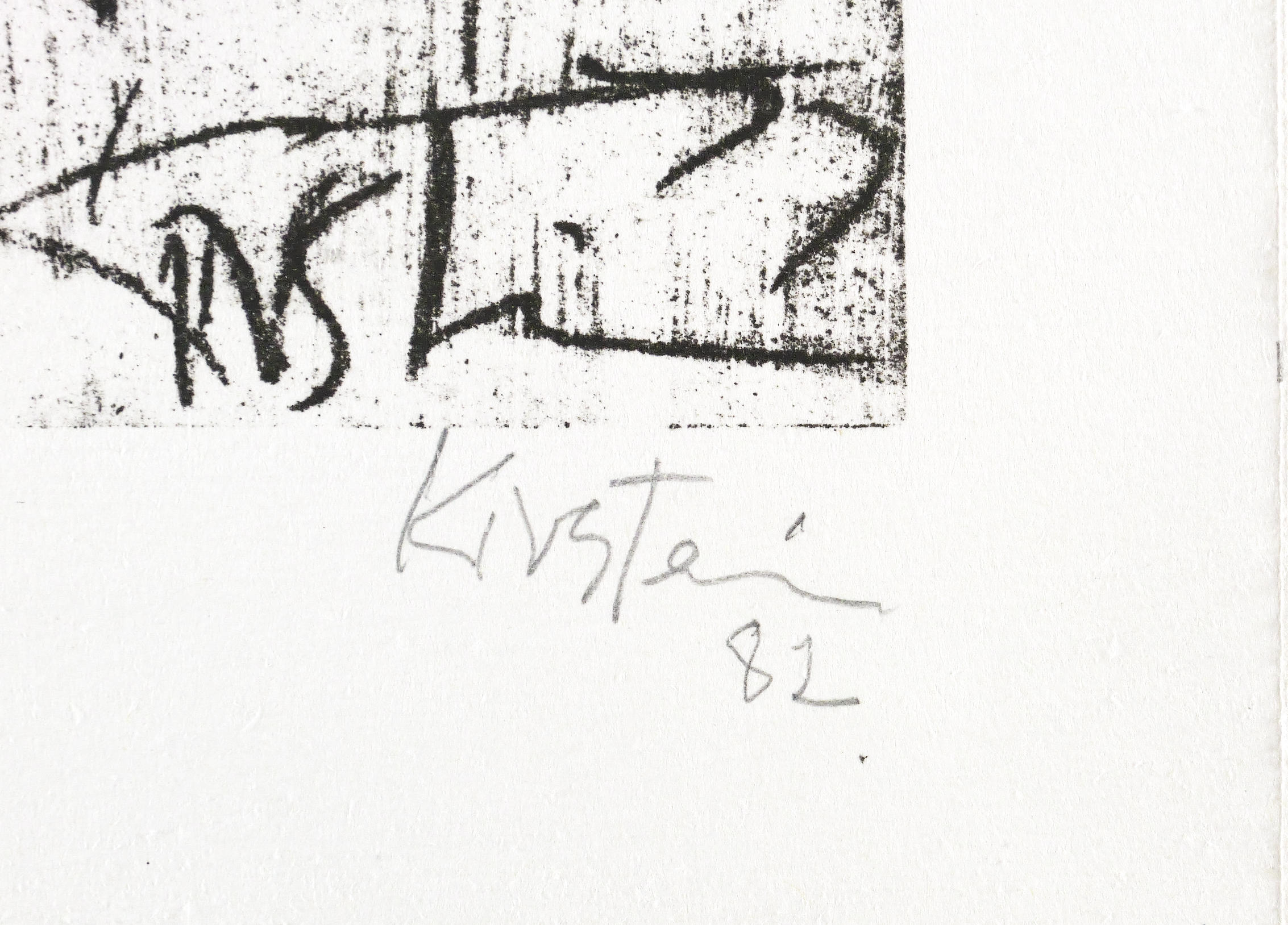 1982. Lithografie / Kreidelithografie, in Schwarz, auf hellchamois Bütten. – Originale Künstlergrafik, von Helmut Schmidt-Kirstein. – Auflage Exemplar Nr. II/IV. – 23 x 16 cm (Blatt), 14,5 x 9,8 cm (Darstellung / Druckbild).