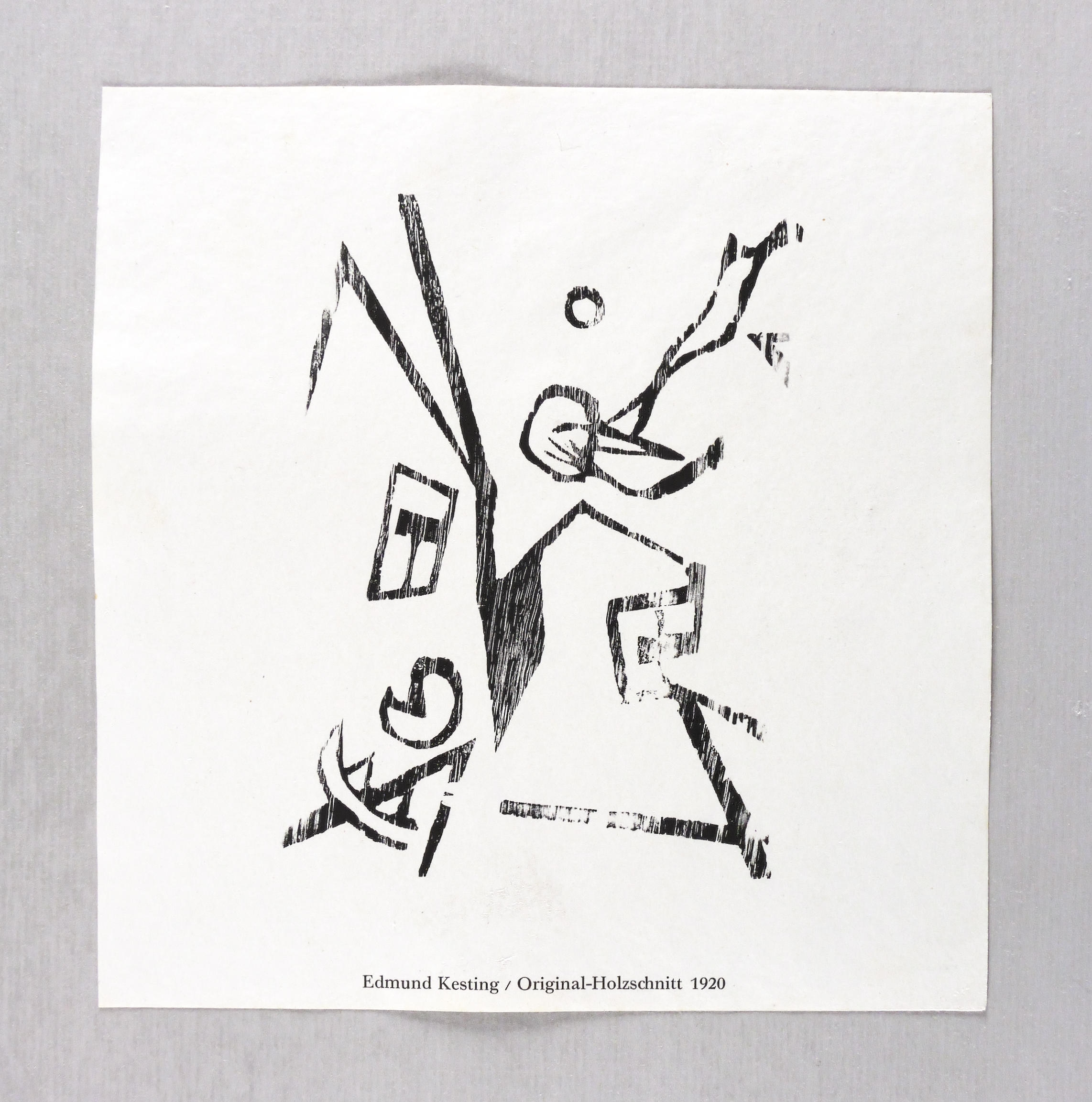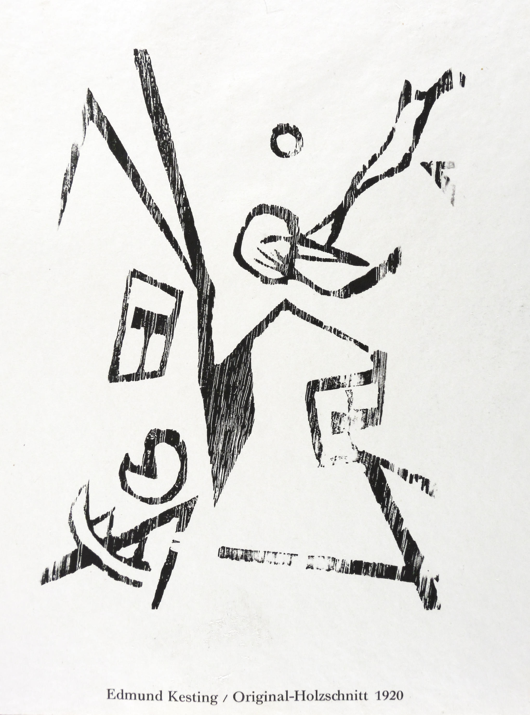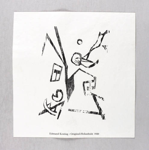 Lehmann 63. – Aus: Edmund Kesting & Lothar Schreyer, Der Weg. Aus den Lehrwerkstätten Malerei, Bildhauerei, Raumgestaltung, Reklamegestaltung, Bühnengestaltung, Bildbaugestaltung (Dresden/Berlin: Kunstschule Der Weg 1926). – Nicht handsigniert. Unterhalb typografisch bezeichnet: ″Edmund Kesting / Original-Holzschnitt 1920″. – Originaler Holzschnitt von 1920, hier in einem Abzug für die Werbebroschüre ″Der Weg″ von 1926 (auf dem Kopf stehend). – Sehr guter Zustand.