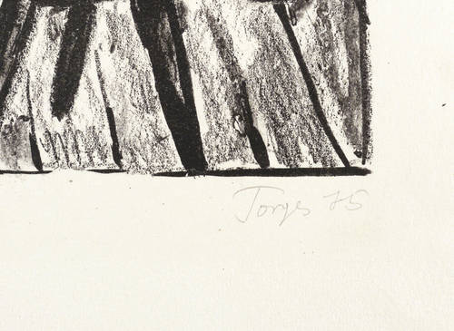 1975. Lithografie / Kreide- & Pinsellithografie, in Schwarz, auf genarbtem hellgelbem Karton. – Originale Künstlergrafik, von Günter Torges. – 20,1 x 16,0 cm (Darstellung / Druckbild), 33 x 26 cm (Blatt).
