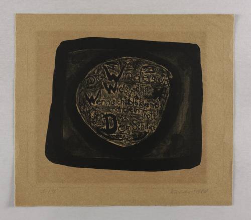 1980. Lithografie / Pinsellithografie, in Schwarz, auf braun getöntem Hahnemühle. – Originale Künstlergrafik, von Andreas Küchler. – Auflage Exemplar Nr. I/II. – 22,3 x 25,8 cm (Darstellung / Druckbild), 32 x 36 cm (Blatt).