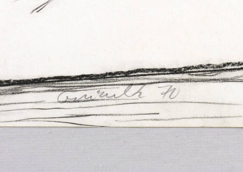 1970. Zeichnung / Kreidezeichnung, in Schwarz, auf hellgelbem Velin. – Originale Künstlergrafik, von Waldemar Grzimek. – Unikat. – 30,0 x 38,6 cm (Darstellung / Blatt).