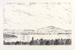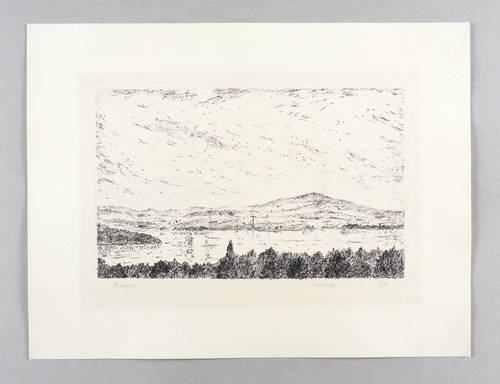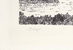 1981. Lithografie / Kreidelithografie, in Schwarz, auf hellchamois Weißenborn. – Originale Künstlergrafik, von Ernst Lewinger. – Probedruck. – 20,4 x 32,7 cm (Darstellung / Druckbild), 36 x 47 cm (Blatt).