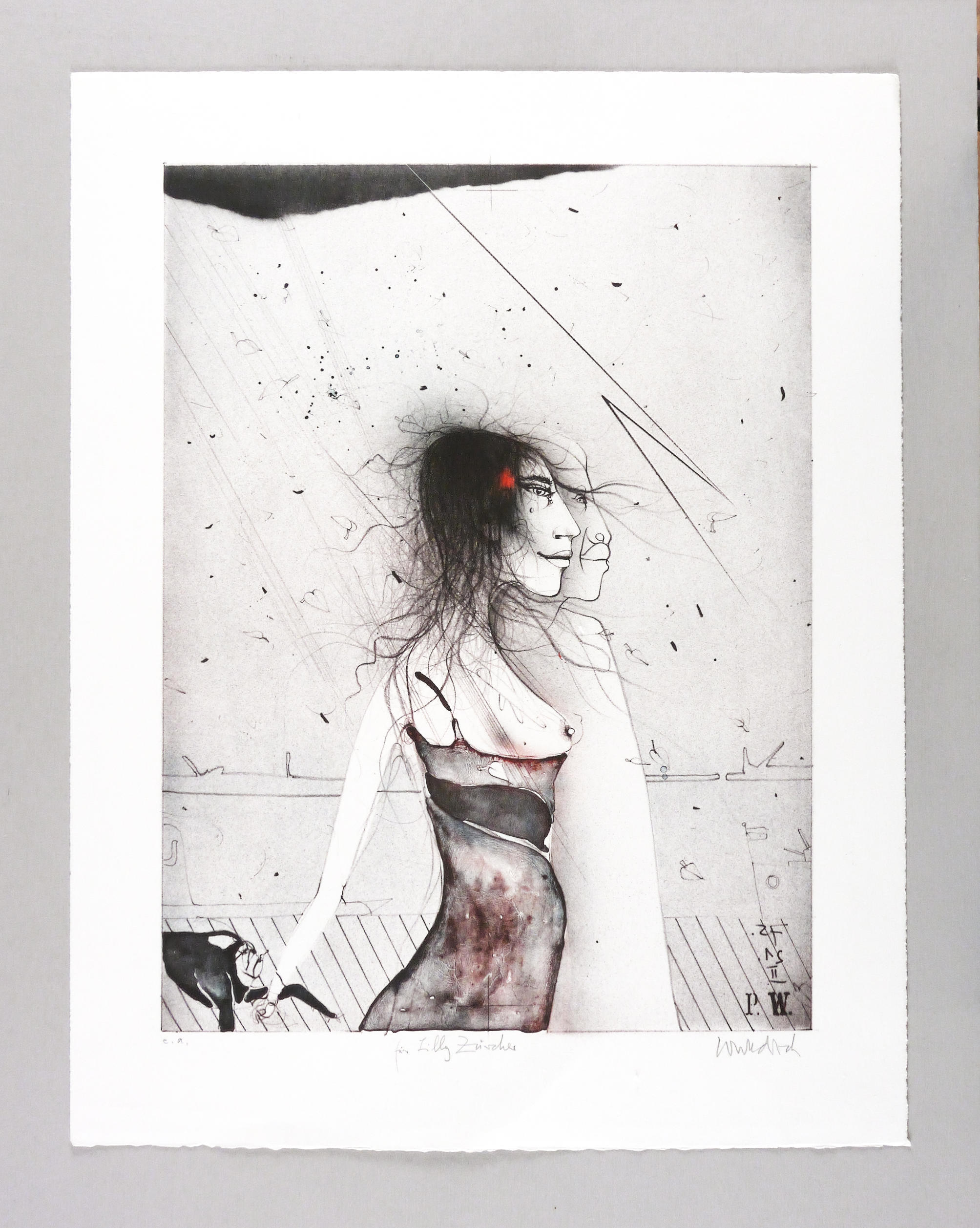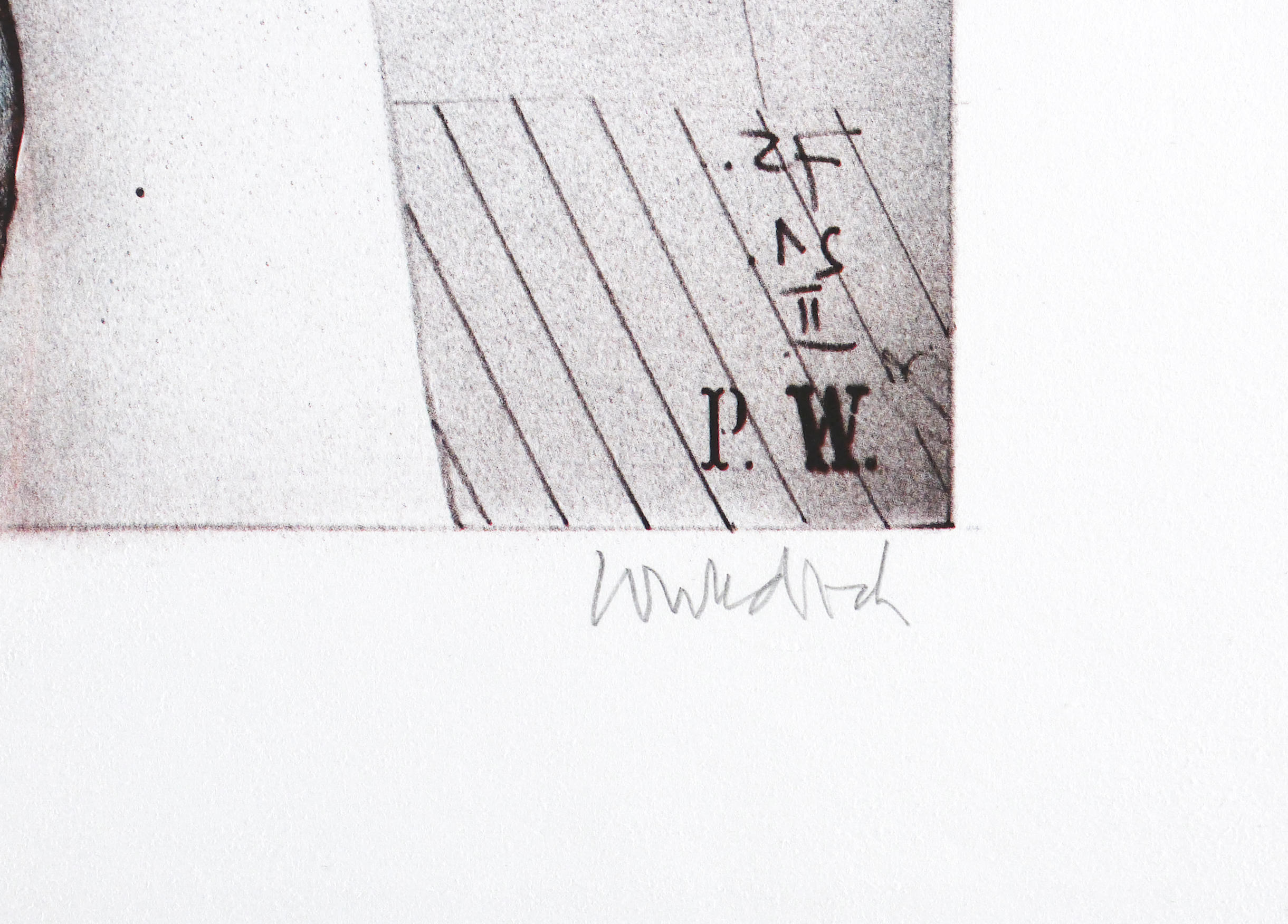 Riediger 494. – Rechts unten in Bleistift signiert: ″Wunderlich″. Links Auflagenbezeichnung: ″e.a.″ Widmung an Lilly Zürcher. Im Stein rechts unten Datum und Signatur: ″75. 21. II / P.W.″ – Druck von Emile Matthieu in Dielsdorf, Schweiz. – Eines von 8 Künstlerexemplaren zu der Auflage von insgesamt 100 Exemplaren. – Sehr guter Zustand.