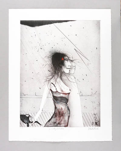 Paul Wunderlich (1927 Eberswalde - 2010 Saint-Pierre-de-Vassols, Provence). Deutscher Maler, Zeichner, Bildhauer und Grafiker, Vertreter des Neosurrealismus mit Elementen aus Art Déco und Jugendstil. Besuch der Schlosskunstschule in Eutin. Ab 1947 Studium an der Kunstschule in Hamburg bei Willi Tietze gemeinsam mit Horst Janssen und Reinhard Drenkhahn; 1950/51 Studium bei Willem Grimm an der Hochschule für bildende Künste Hamburg. Dort anschließend Lehrbeauftragter für Lithografie und Radierung. 1951 druckte er für Emil Nolde sowie 1952 für Oskar Kokoschka die Lithografie-Folge "Ann Eliza Reed". 1959 veröffentlichte er die bekannte erotische Folge "qui s'explique" mit 12 Lithografien, die 1960 durch die Hamburger Staatsanwaltschaft beschlagnahmt wurde. 1961-63 ging er nach Paris. 1963-68 Professur an der Hochschule für bildende Künste Hamburg. Ab 1969 Plastiken aus Bronze. Ab 1970 Auseinandersetzung mit Albrecht Dürer.