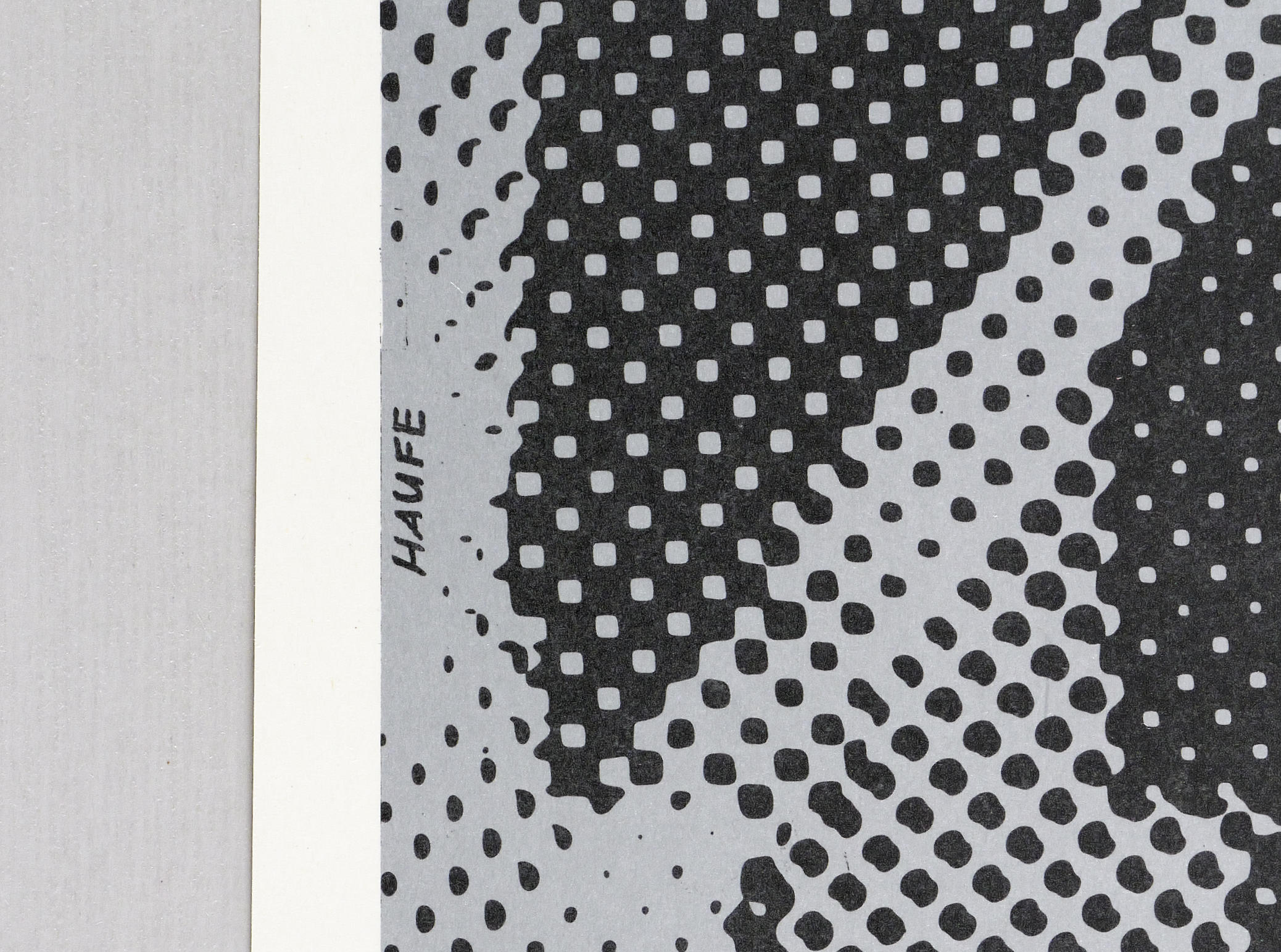 Jürgen Haufe (1949 Ohorn bei Pulsnitz - 1999 Dresden). Deutscher Maler und Grafiker. 1971-74 Studium an der Fachschule für Werbung und Gestaltung Berlin-Oberschöneweide (Fachrichtung Gebrauchsgrafik). 1974-76 Grafiker bei der DEWAG Dresden. 1996 Berufung zum Professor an der Hochschule für Bildende Künste Dresden (HfBK). Seit 1976 freischaffend Mitglied im Verband Bildender Künstler, später im Sächsischen Künstlerbund e.V. Seit 1991 Mitglied im Bund Deutscher Grafikdesigner. Haufe prägte die Kultur der Werbegrafik der DDR, sowie nach 1989 die künstlerische Landschaft der BRD mit Plakaten, freier Grafik, mit Drucken, Collagen, Buch- und Plattencovergestaltungen sowie freier Malerei.