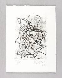 1982. Lithografie / Kreidelithografie, in Schwarz, auf hellchamois Bütten. – Originale Künstlergrafik, von Helmut Schmidt-Kirstein. – Auflage Exemplar Nr. I/IV. – 21 x 16 cm (Blatt), 14,4 x 9,9 cm (Darstellung / Druckbild).