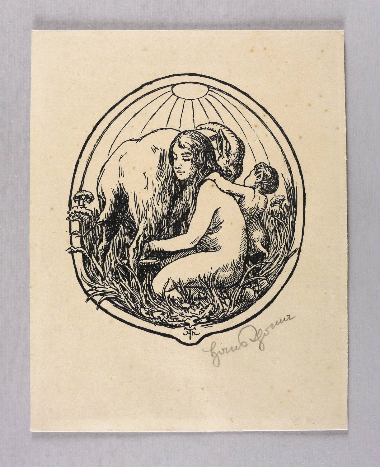 Thoma, Hans. – „Faunfamilie mit Ziege”.