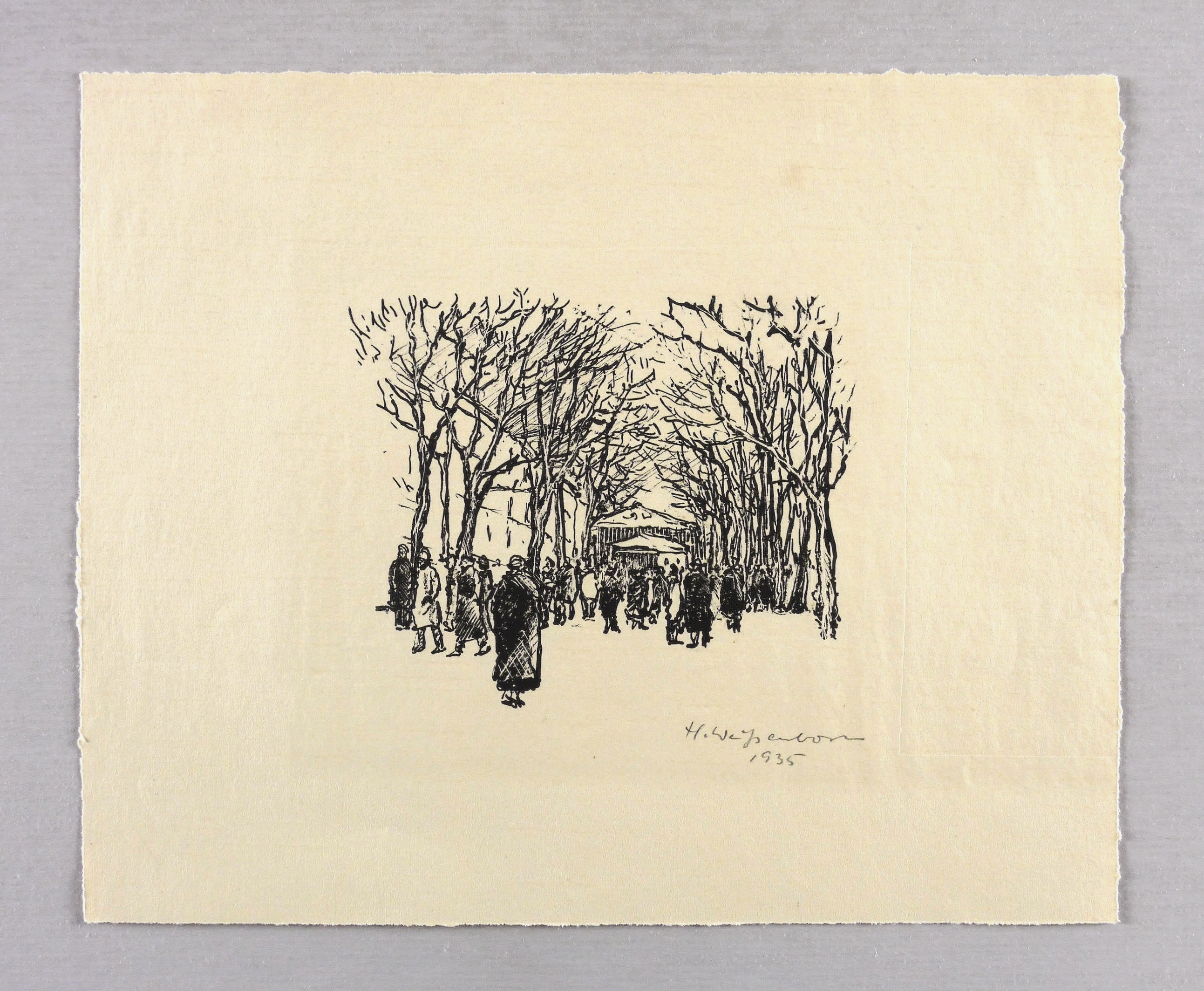Rechts unten in Bleistift signiert und datiert: ″H. Weißenborn 1935″. Wasserzeichen der Papiermühle. – Provenienz: Sammlung Felix und Rosika Rosenfelder, Leipzig. – Sehr guter Zustand.