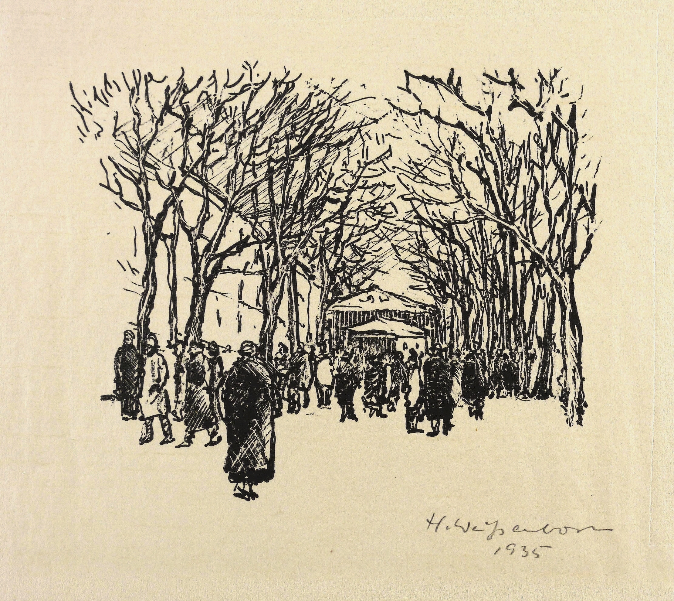 Weißenborn, Hellmuth. – „Baumallee mit Spaziergängern”.