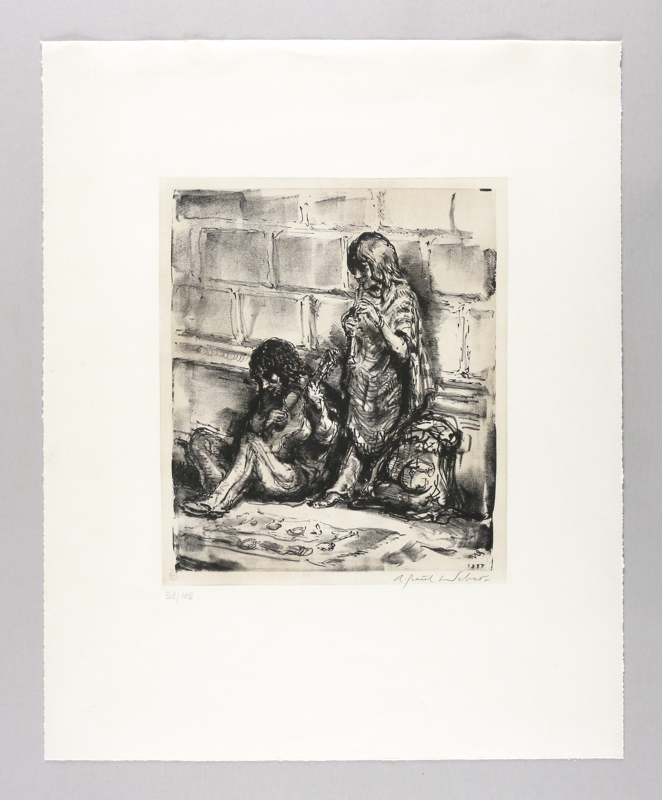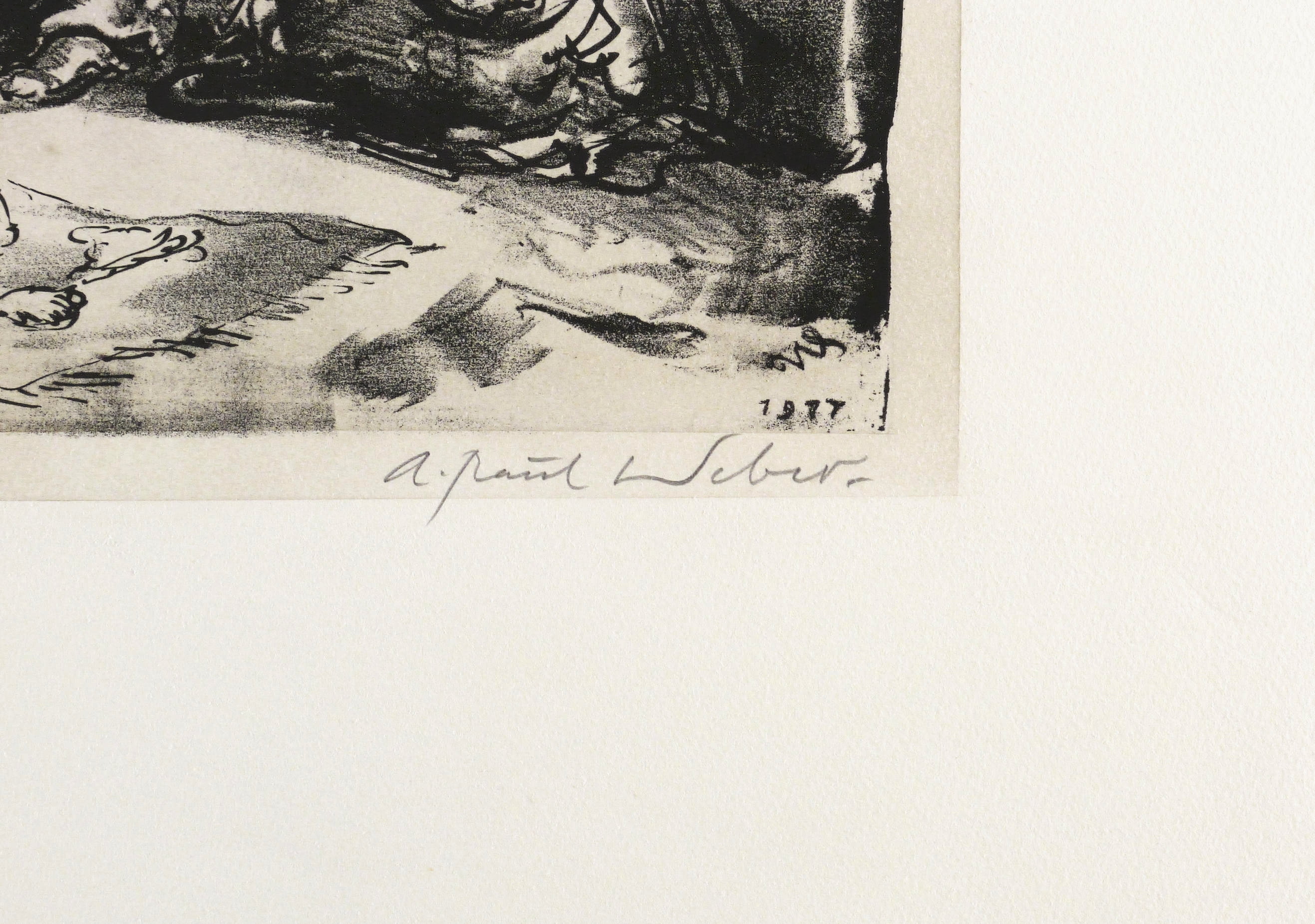 Nicht bei Arp. – Rechts unten in Bleistift signiert: ″A. Paul Weber″. Links unten Auflagenbezeichnung: ″52/185″. Darüber Stempel in Rot mit dem Signet der Clan-Presse (ehem. Widerstandskreis). Im Stein rechts unten Monogramm und Jahr – Ohne jeden Tadel. Sehr guter Zustand.