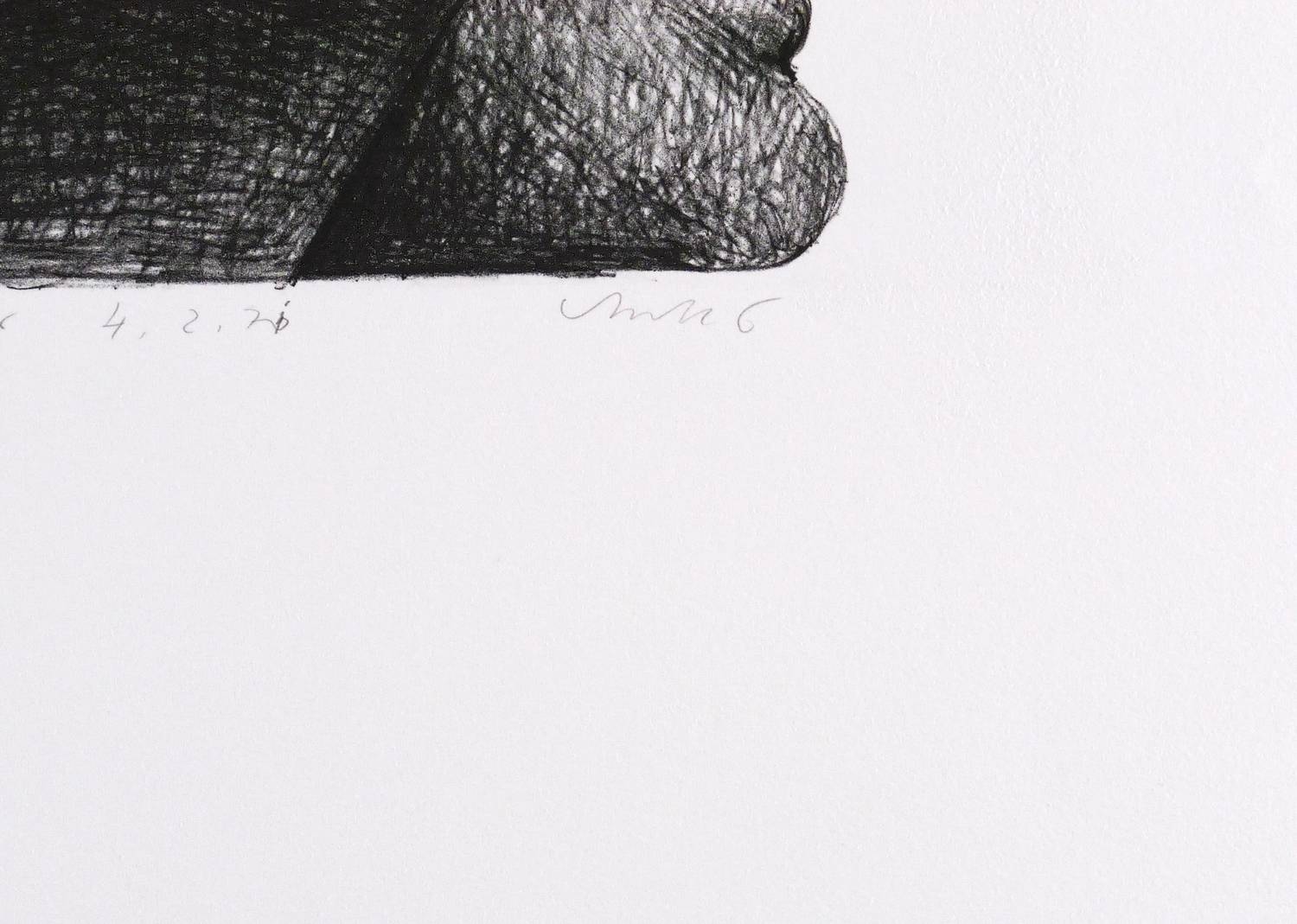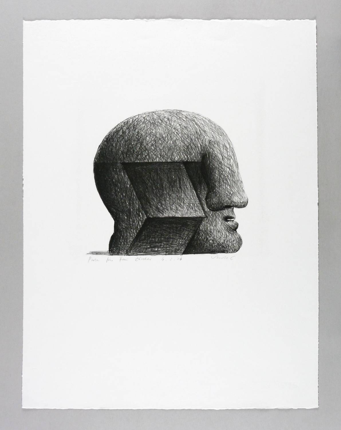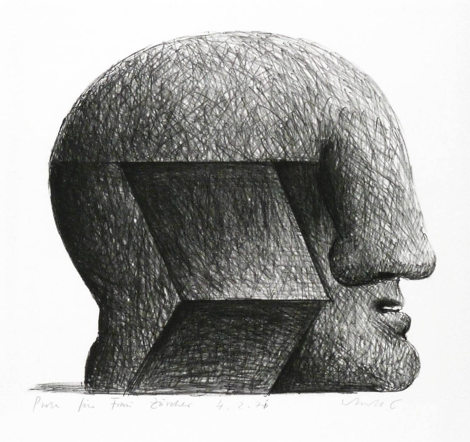 1970. Lithografie / Kreidelithografie, in Schwarz, auf festem hellchamois BFK Rives. – Originale Künstlergrafik, von Horst Antes. – Probedruck. – 24,7 x 27,5 cm (Darstellung / Druckbild), 66 x 50 cm (Blatt).