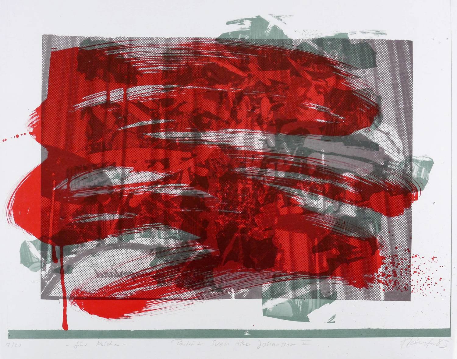 Rechts unten in Bleistift signiert und datiert: ″Haufe 83″. Links Auflagenbezeichnung, Widmung und Titel: ″1/20 / für Micha / Porträt Sven Ake Johansson II″. – Originalrandiges Exemplar. Minimale Lagerspuren. Sehr guter Zustand.