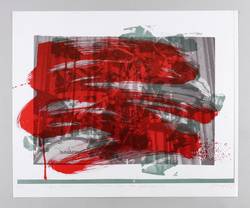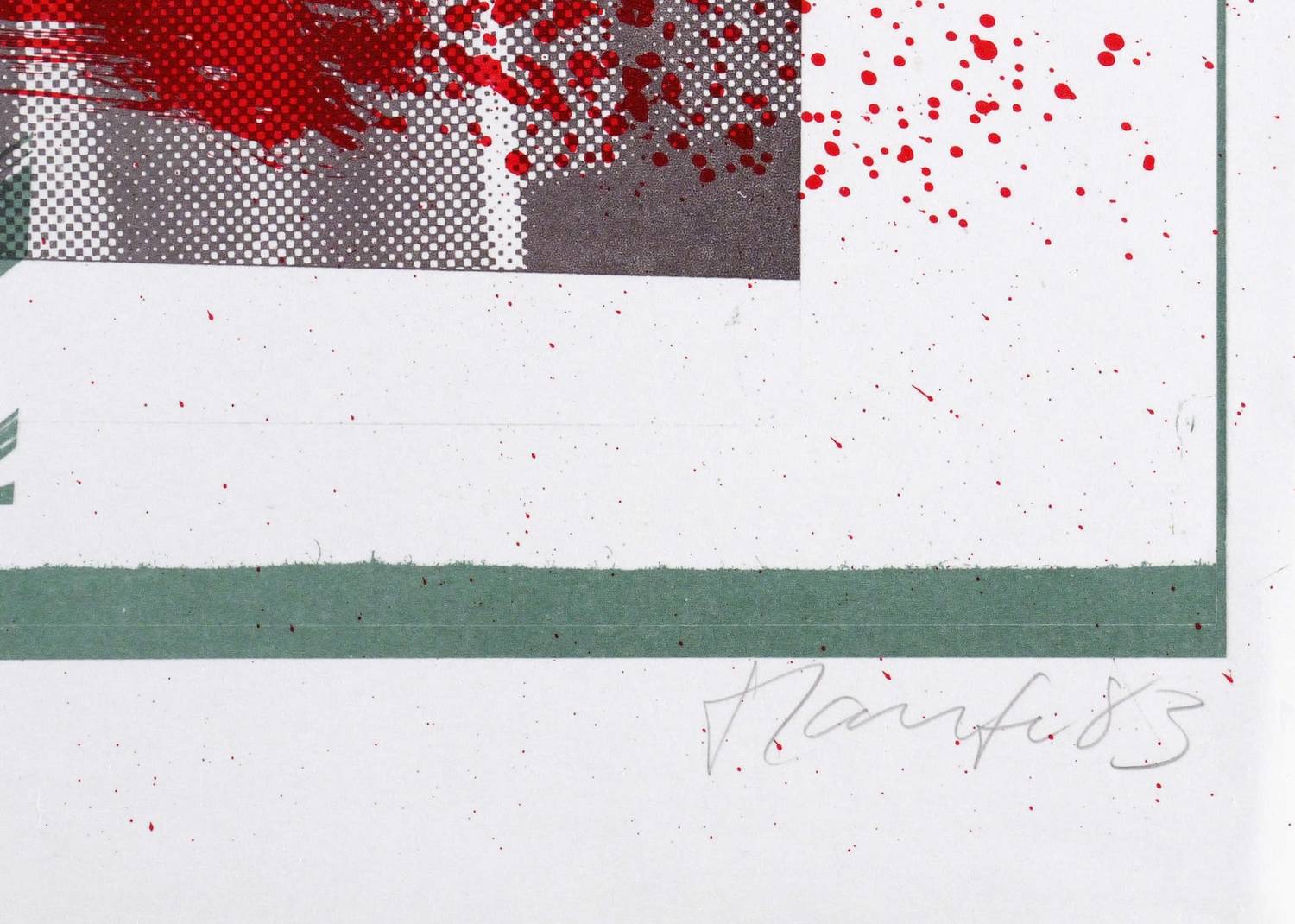 1983. Farbsiebdruck / Farbserigrafie, in 3 Farben, auf glattem weißem Werkdruck. – Originale Künstlergrafik, von Jürgen Haufe. – Auflage Exemplar Nr. 1/20. – 52 x 62 cm (Blatt), 43,7 x 60,9 cm (Darstellung / Druckbild).