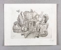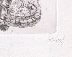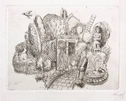 1978. Radierung / Aquatinta & Strichätzung, in Schwarz, auf hellchamois Weißenborn. – Originale Künstlergrafik, von Lutz Friedel. – 12,5 x 16,7 cm (Darstellung / Platte), 17 x 21 cm (Blatt).