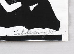 Um 1990. Holzschnitt, in Schwarz, auf weißlichem Similijapan. – Originale Künstlergrafik, von Gil Schlesinger. – 16,0 x 19,7 cm (Darstellung / Druckbild), 17 x 21 cm (Blatt).
