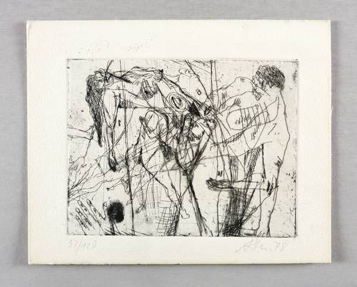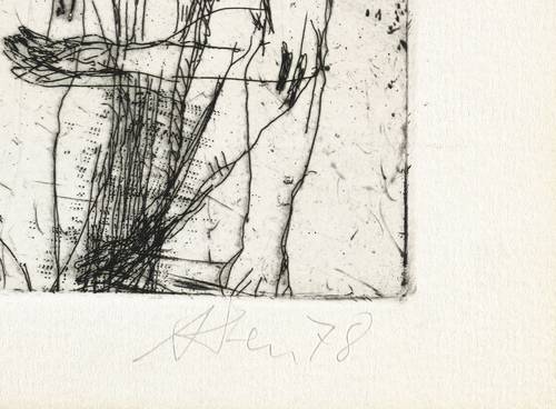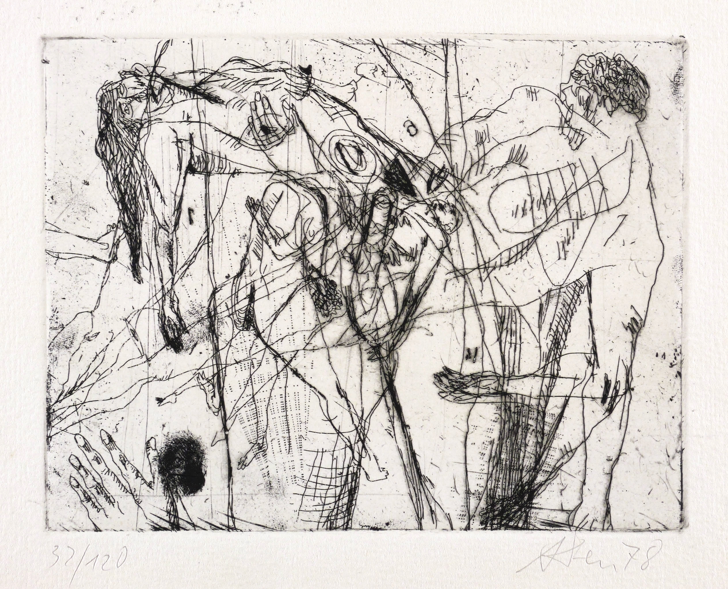 1978. Radierung / Strichätzung, in Schwarz, auf hartem hellchamois Weißenborn. – Originale Künstlergrafik, von Andreas Dress. – Auflage Exemplar Nr. 32/120. – 12,5 x 16,0 cm (Darstellung / Platte), 17 x 21 cm (Blatt).