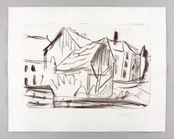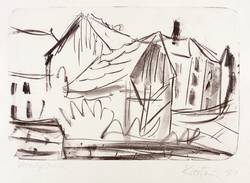 1981. Lithografie / Kreidelithografie, in Schwarzviolett, auf hellchamois Hahnemühle. – Originale Künstlergrafik, von Helmut Schmidt-Kirstein. – Vorzugsdruck. – 32,1 x 48,3 cm (Darstellung / Stein), 48 x 60 cm (Blatt).