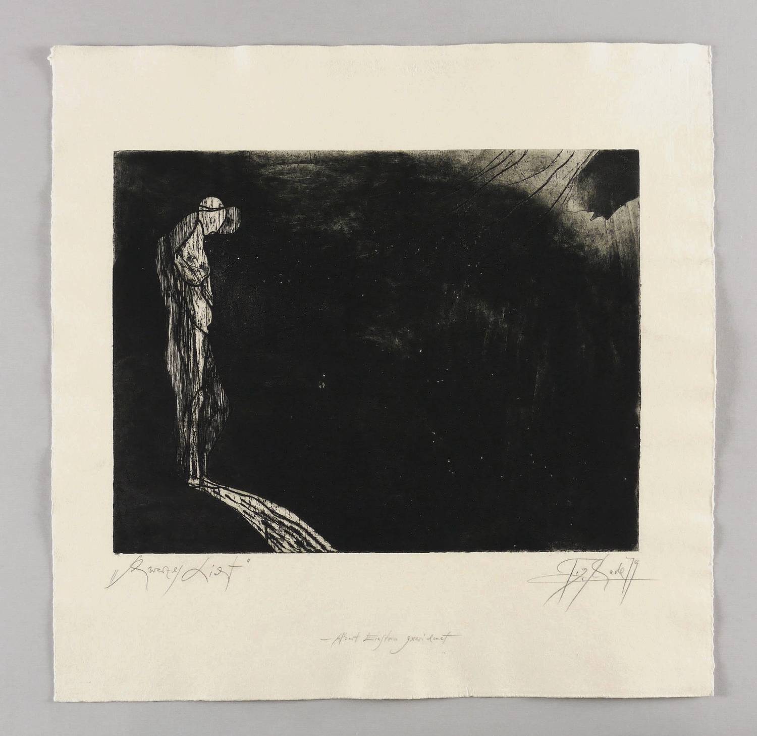 In Bleistift rechts unten signiert und datiert: ″G.T. Schade 79″. Links Titel: ″Schwarzes Licht″. Unten bezeichnet: ″Albert Einstein gewidmet″. – Tadellos. Sehr guter Zustand.