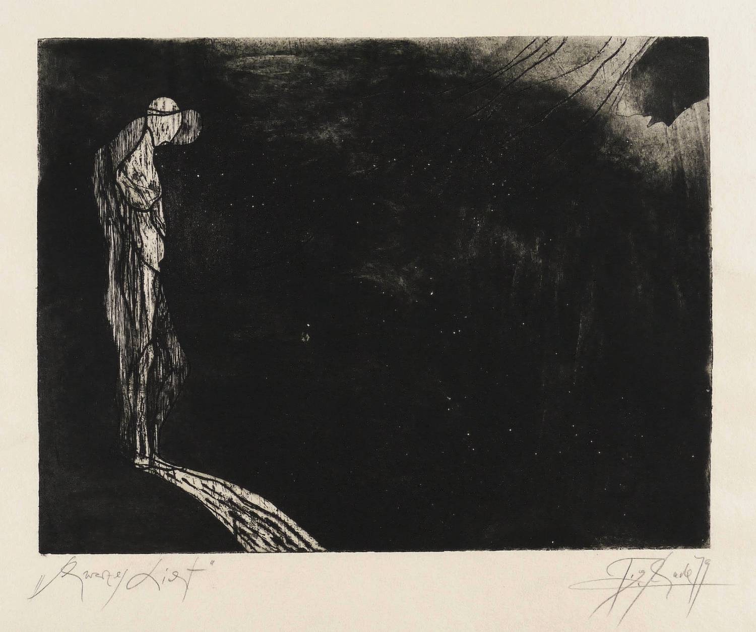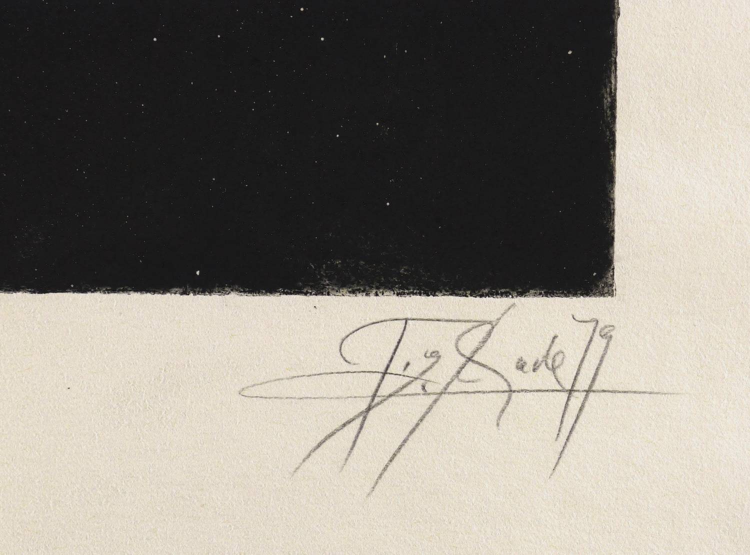 1979. Radierung / Strichätzung & Aquatinta, in Schwarz, auf schwerem gelbem Hahnemühle. – Originale Künstlergrafik, von Gregor Torsten Kozik. – 30,4 x 39,7 cm (Darstellung / Platte), 50 x 50 cm (Blatt).