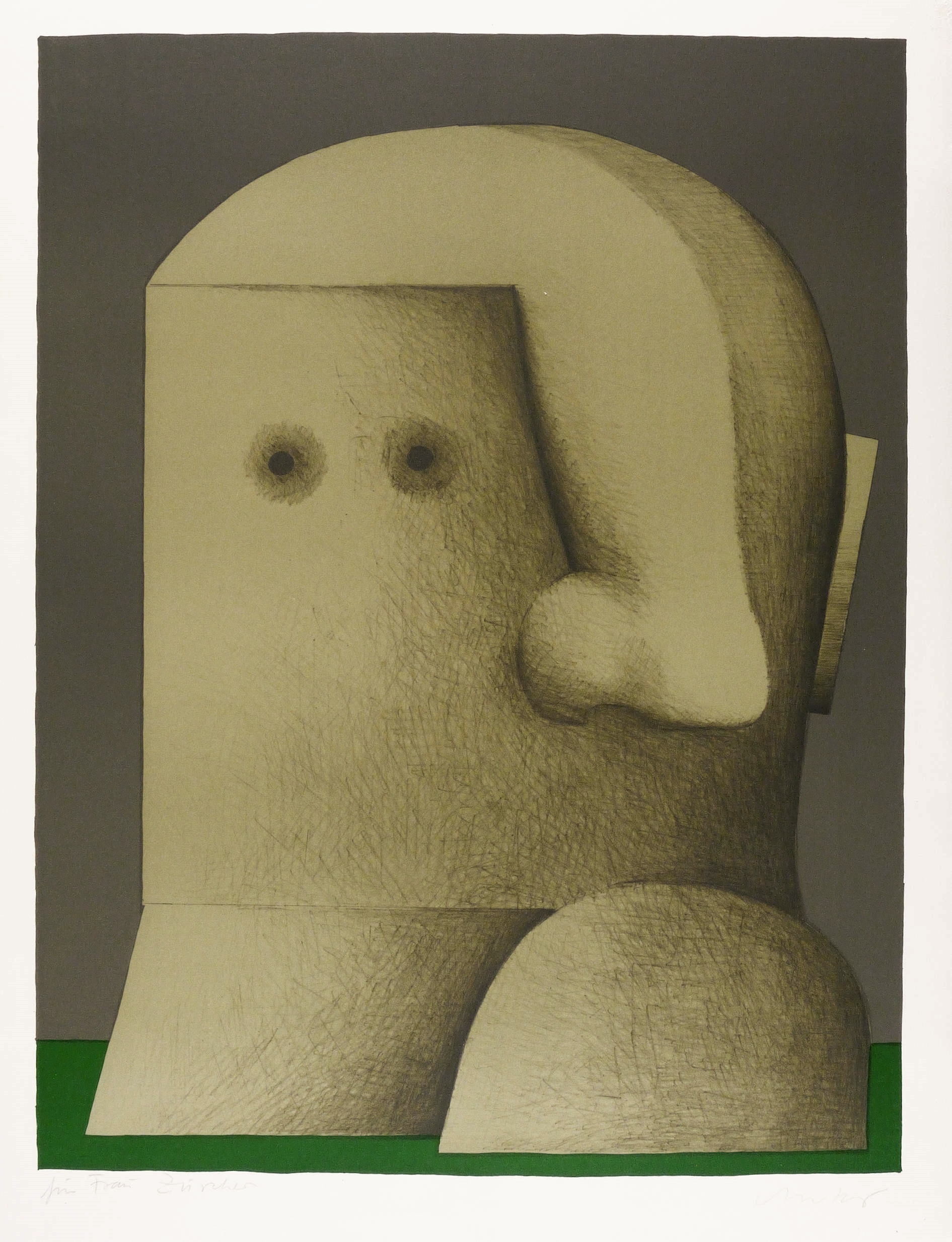 1971. Farblithografie / Kreide- & Pinsellithografie, in 4 Farben, auf rauem hellchamois BFK Rives. – Originale Künstlergrafik, von Horst Antes. – 76,0 x 58,5 cm (Darstellung / Druckbild), 76 x 57 cm (Blatt).