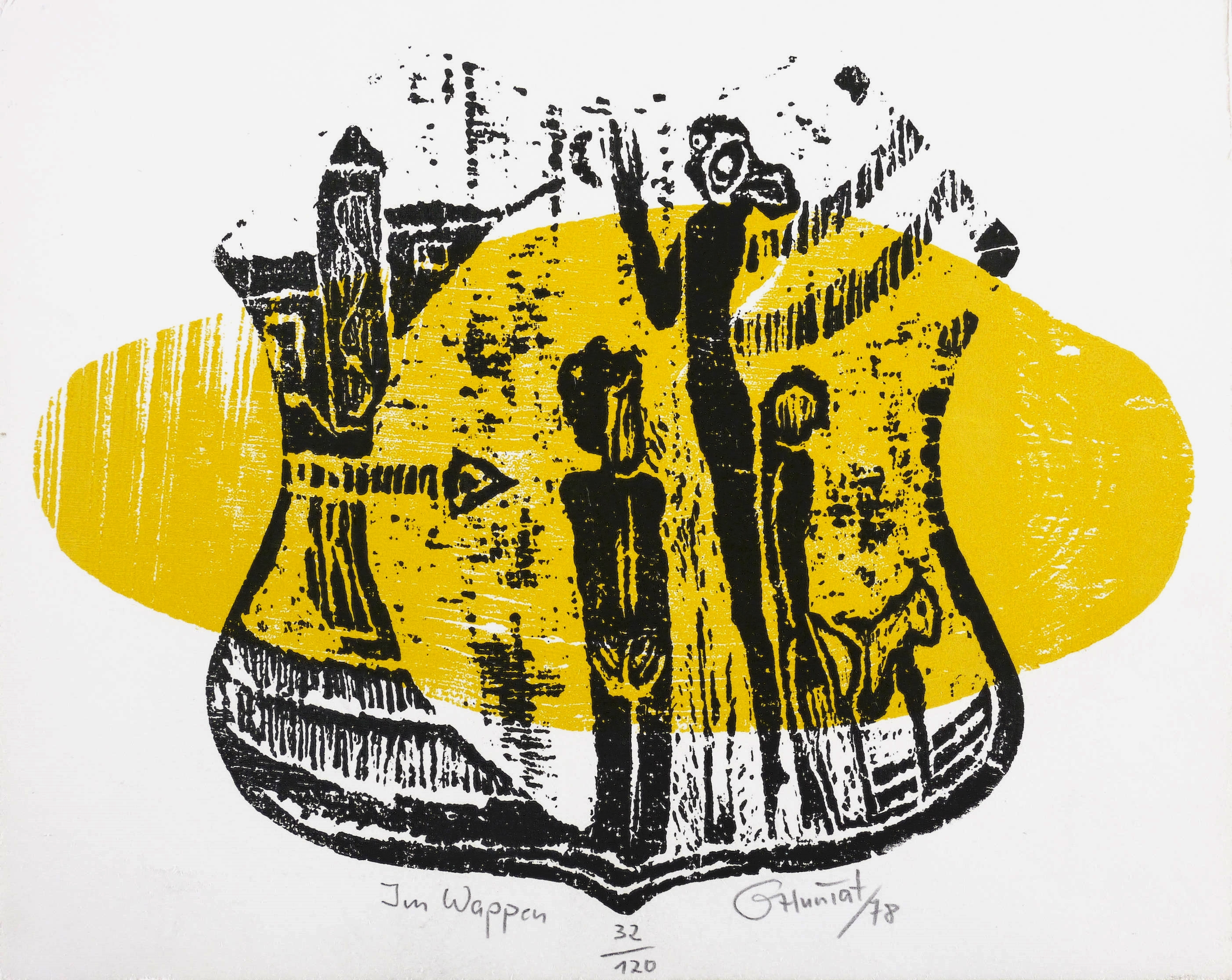 Rechts unten in Bleistift signiert und datiert: ″GHuniat / 78″. Links Titel: ″Im Wappen″. Mittig Auflagenbezeichnung: ″32/120″. – Linke obere Blattecke unscheinbar bestoßen. Guter Zustand.