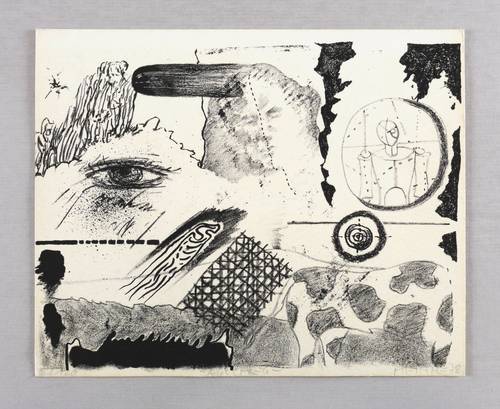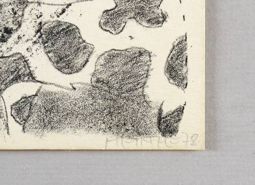 1978. Lithografie / Kreide-, Feder- & Pinsellithografie, in Schwarz, auf gelblichem Velinkarton. – Originale Künstlergrafik, von Frieder Heinze. – Auflage Exemplar Nr. 4/120. – 17,1 x 21,0 cm (Darstellung / Blatt).