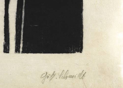 Gustav Schmidt (1888 Peine - 1972 Dresden). Deutscher Maler, Grafiker, Bildhauer und Keramiker. Namhafter Vertreter des expressiven und kritischen Realismus. Studium an der Akademie in Dresden bei Robert Sterl und Carl Bantzer. 1911-13 Meisterschüler bei Otto Gußmann. Als Soldat im Ersten Weltkrieg schwer verwundet kehrte er 1917 als Zeichenlehrer ans Realgymnasium Peine zurück. Seit 1919 als freischaffender Künstler in Dresden. Widmete sich vor allem antiken und biblischen Bildthemen. Sein Werk umfasst Gemälde, Zeichungen sowie druckgrafische Blätter in Holzschnitt und Gipshochdruck, so z.B. die Grafikfolgen "Passion Christi" und "Die ersten Menschen".