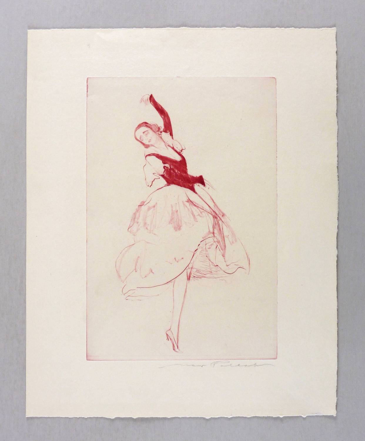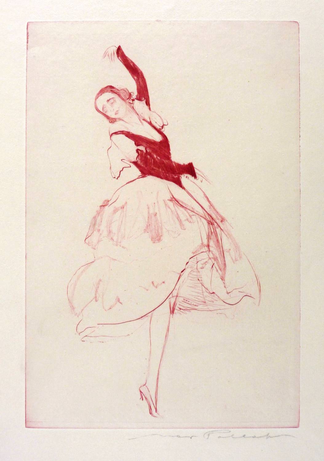1924. Radierung / Kaltnadel & Roulette, in Weinrot, mit zartem Plattenton, auf feinem chamois J.W.-Zanders. – Originale Künstlergrafik, von Max Pollak. – 26,7 x 18,0 cm (Darstellung / Platte), 37 x 30 cm (Blatt).