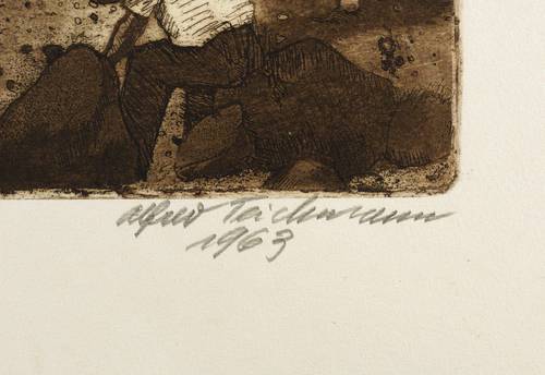 Rechts unten in Bleistift signiert und datiert: ″Alfred Teichmann 1963″. – Tadellos. Sehr guter Zustand.