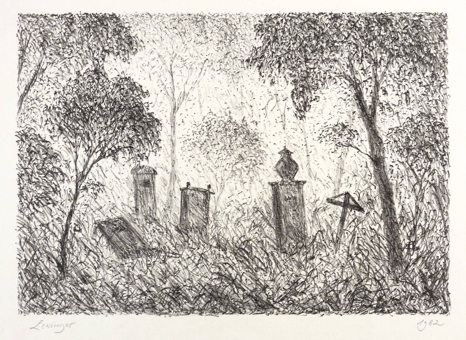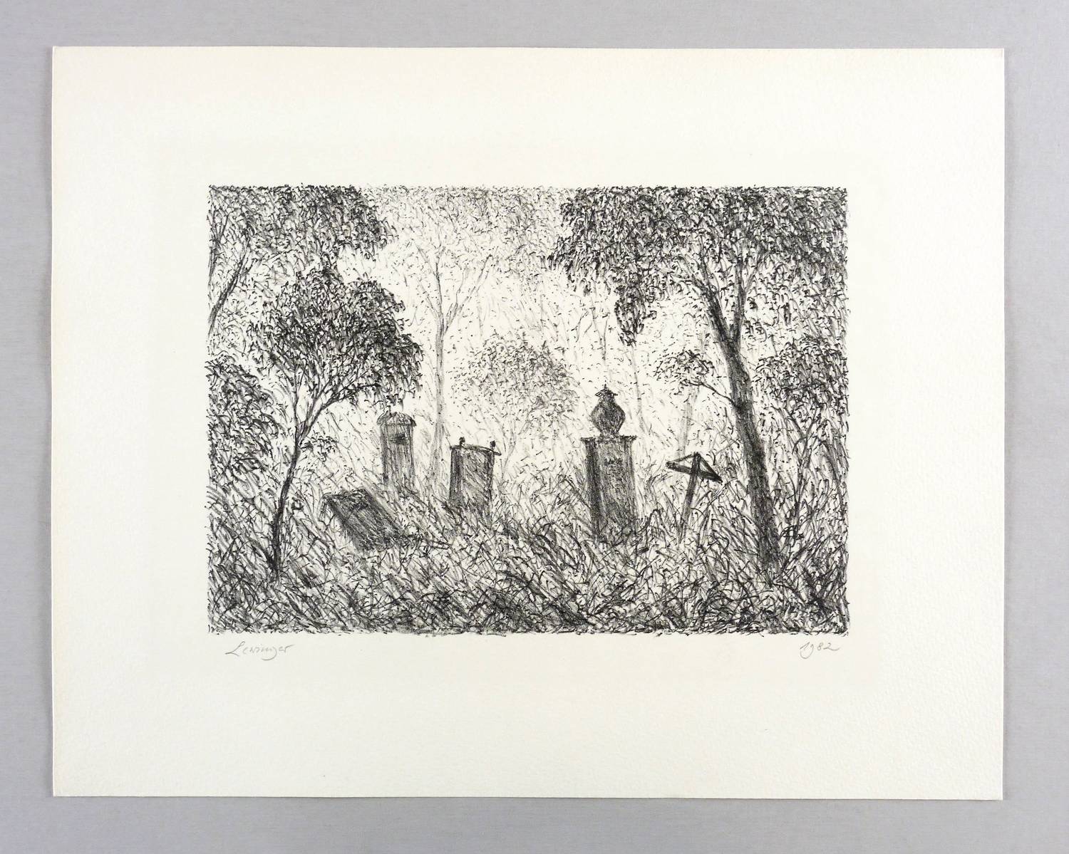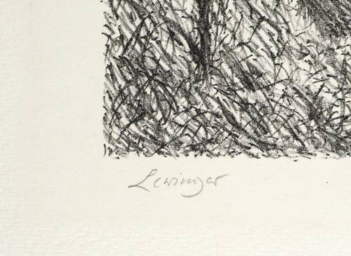 1982. Lithografie / Kreidelithografie, in Schwarz, auf hellchamois Weißenborn. – Originale Künstlergrafik, von Ernst Lewinger. – 21,0 x 30,0 cm (Darstellung / Druckbild), 35 x 44 cm (Blatt).