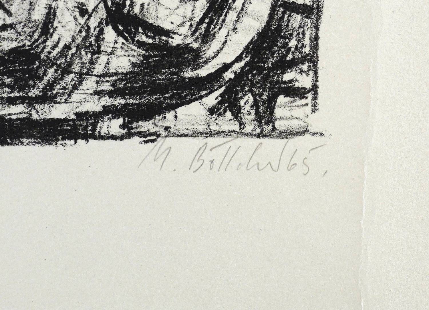 1965. Lithografie / Kreidelithografie, in Schwarz, auf festem gelblichem Velinkarton. – Originale Künstlergrafik, von Manfred Böttcher. – 25,1 x 34,0 cm (Darstellung / Druckbild), 40 x 50 cm (Blatt).