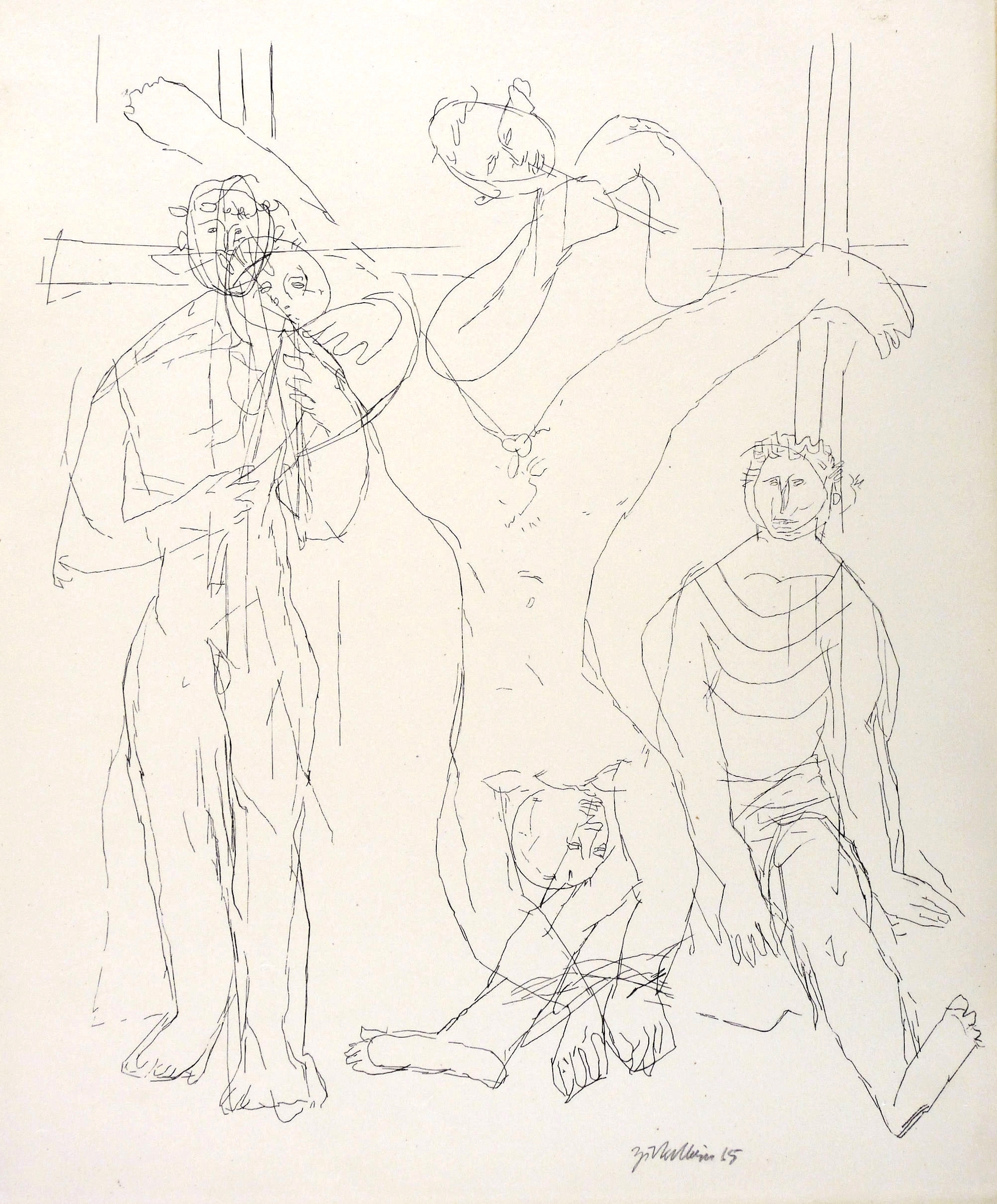 Rechts unten in Bleistift signiert und datiert: ″Zickelbein 65″. – Blattkanten leicht gebräunt. Insgesamt guter Zustand.