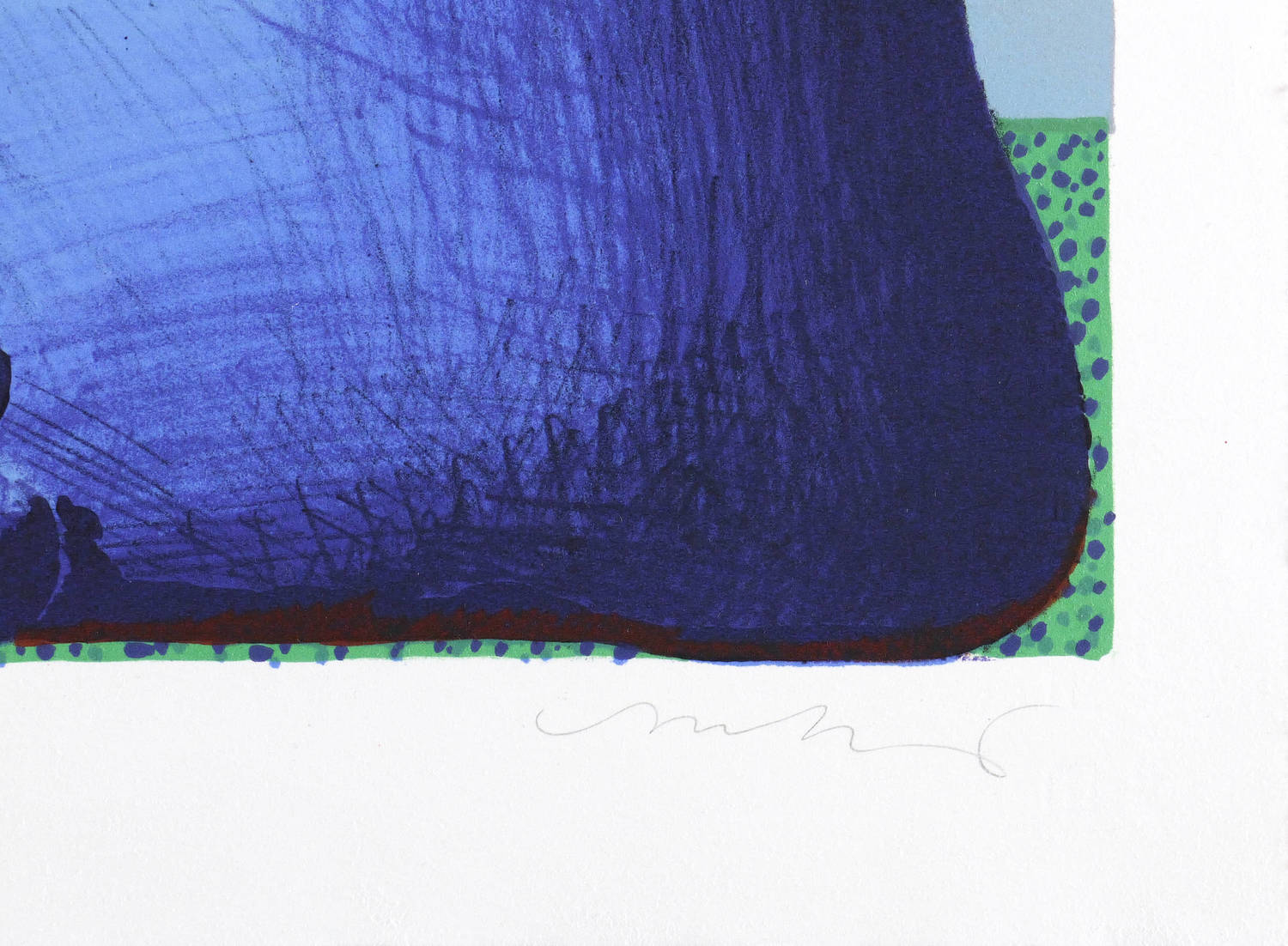 1975. Farblithografie / Kreide- & Pinsellithografie, in 7 Farben, auf rauem hellchamois BFK Rives. – Originale Künstlergrafik, von Horst Antes. – Druckerexemplar. – 68,4 x 51,2 cm (Darstellung / Druckbild), 76 x 57 cm (Blatt).