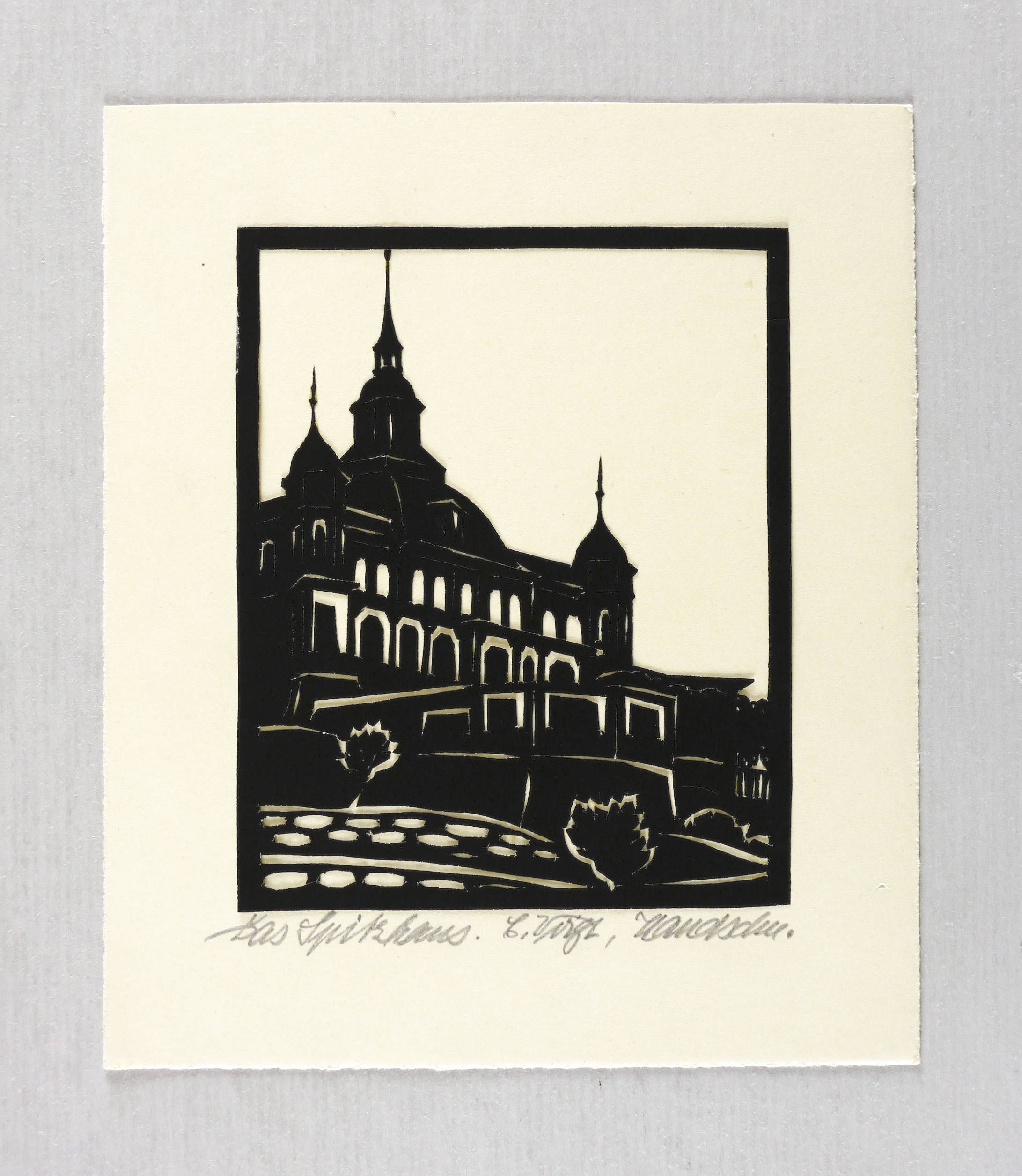 Unterhalb in Bleistift signiert: ″C. Voigt″. Links Titel: ″Das Spitzhaus″. Rechts Technikbezeichnung: ″Handschn.″ – Sehr guter Zustand.