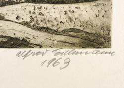 1963. Radierung / Aquatinta, in Schwarz, auf kräftigem gelbem Büttenkarton. – Originale Künstlergrafik, von Alfred Teichmann. – 14,0 x 18,6 cm (Darstellung / Platte), 24 x 25 cm (Blatt).