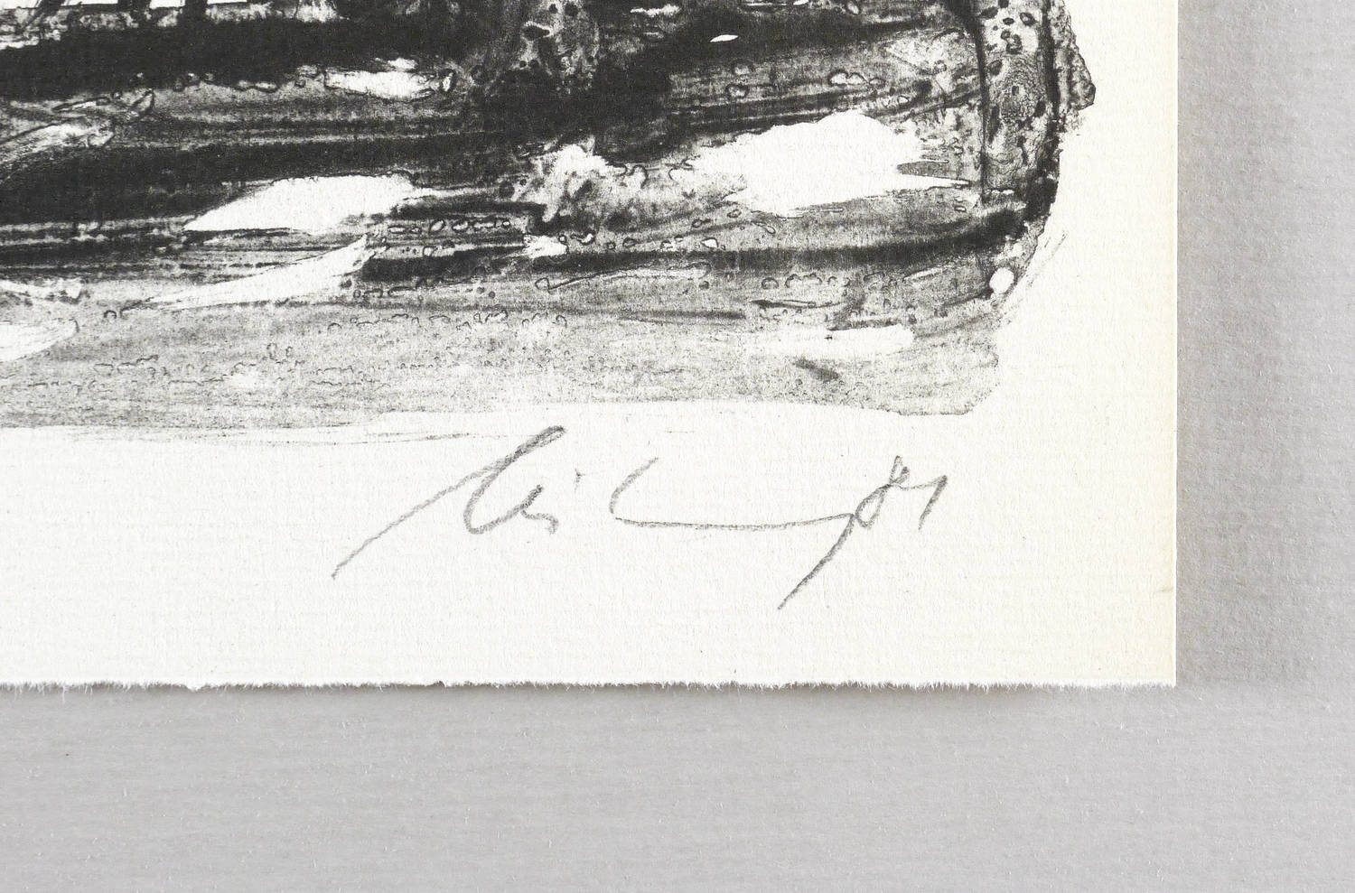 1981. Zinkografie / Kreide- & Pinselzinkografie, in Schwarz, auf hartem hellchamois Weißenborn. – Originale Künstlergrafik, von Helge Leiberg. – Auflage Exemplar Nr. 64/100. – 38 x 35 cm (Blatt), 35,2 x 33,2 cm (Darstellung / Druckbild).