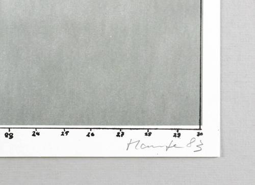 Rechts unten in Bleistift signiert und datiert: ″Haufe 83″. Links Auflagenbezeichnung, Widmung und Titel: ″3/18 / für Micha / Lebensräume (Blatt 2)″. – Originalrandiges Exemplar. Sehr guter Zustand.