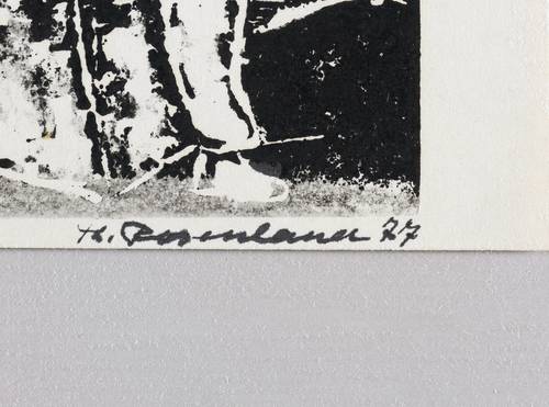 1977. Holzschnitt, in Schwarz, auf hellchamois Velin. – Originale Künstlergrafik, von Theodor Rosenhauer. – 12,0 x 15,0 cm (Darstellung / Druckbild), 13 x 20 cm (Blatt).