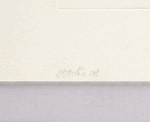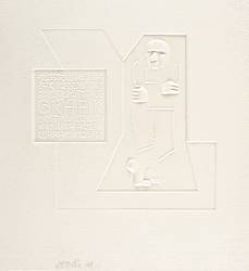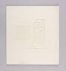 1978. Reliefdruck / Prägedruck, ohne Druckfarbe, auf festem hellchamois Hahnemühle. – Originale Künstlergrafik, von Manfred Richard Böttcher. – 11,4 x 11,5 cm (Darstellung / Platte), 20 x 18 cm (Blatt).
