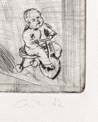 1982. Radierung / Kaltnadel, in Schwarz, auf hellchamois Hahnemühle. – Originale Künstlergrafik, von Sighard Gille. – 22,2 x 30,5 cm (Darstellung / Platte), 28 x 36 cm (Blatt).