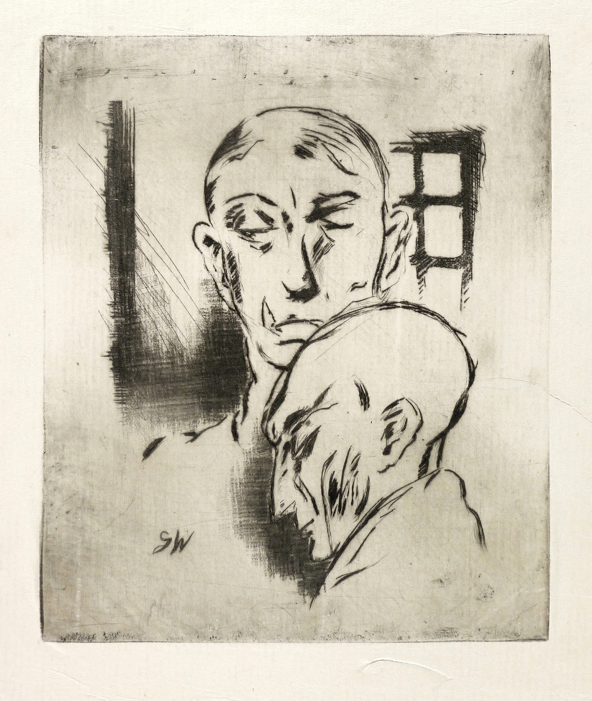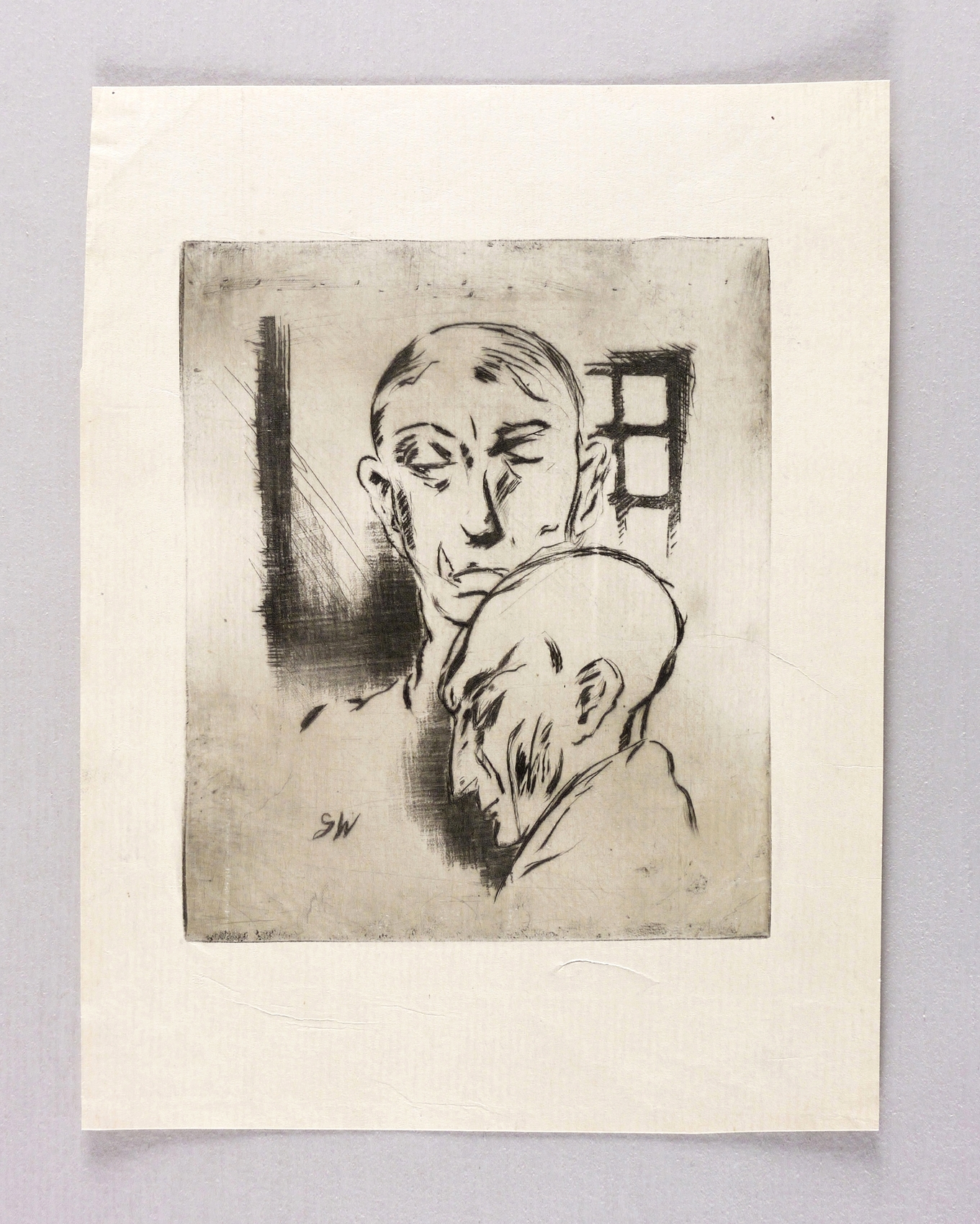 Um 1920. Radierung / Kaltnadel, in Schwarz, mit Plattenton, auf gelbem Bütten. – Originale Künstlergrafik, von Gerhard Windisch. – 14,5 x 12,2 cm (Darstellung / Platte), 22 x 17 cm (Blatt).