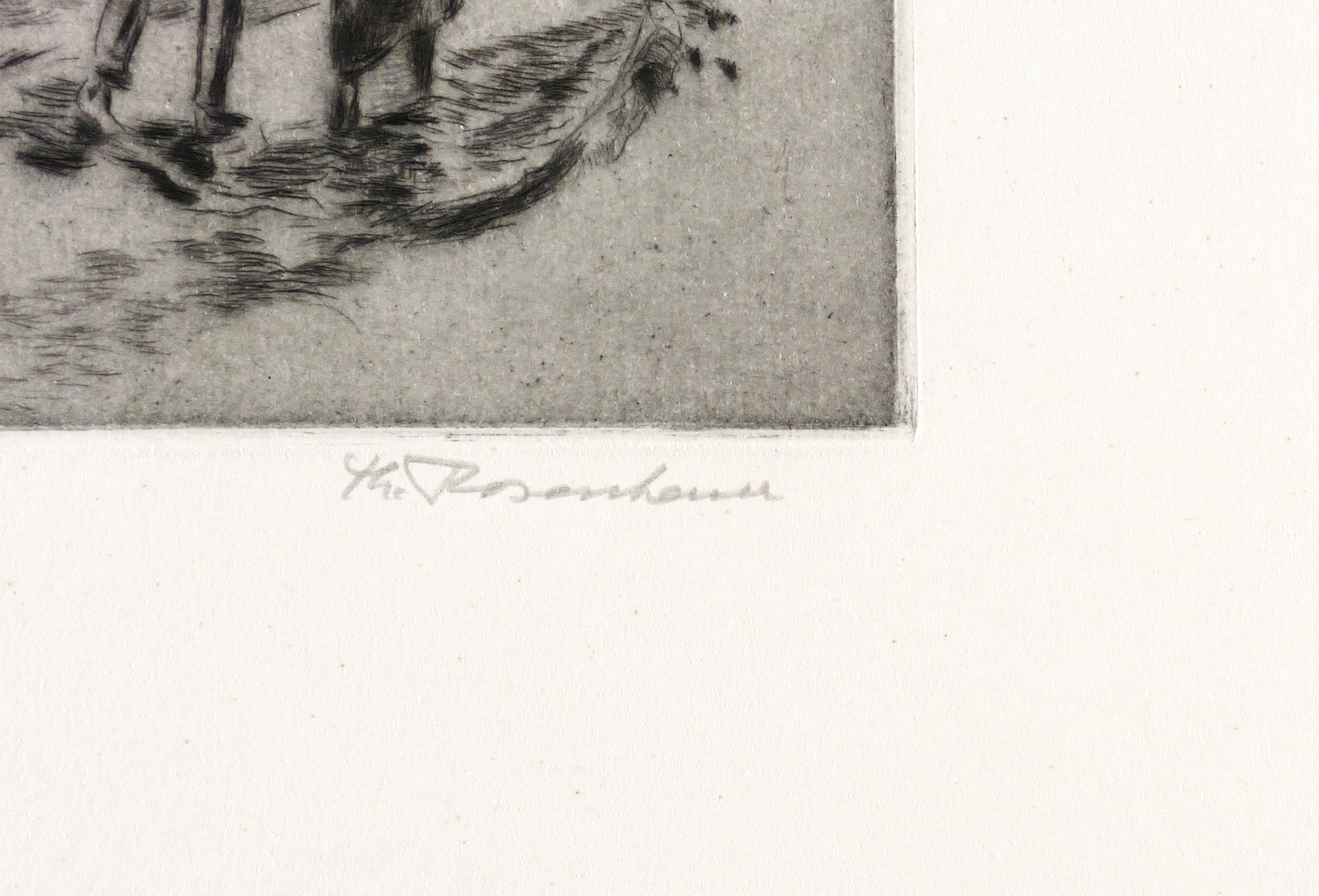 1968. Radierung / Kaltnadel, mit Plattenton, auf hartem hellchamois Velin. – Originale Künstlergrafik, von Theodor Rosenhauer. – 11,9 x 15,8 cm (Darstellung / Platte), 38 x 44 cm (Blatt).