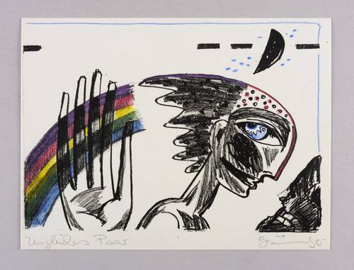 Unten rechts in Bleistift signiert und datiert: ″GBräunling 85″. Links Titel: ″Ungleiches Paar″. – Rückseitig leichte Montagespuren. Sonst tadellos. Sehr guter Zustand.