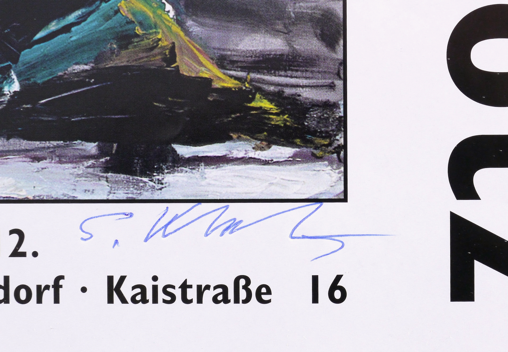 Rechts unten in Kugelschreiber signiert: ″S. Klotz″. – Plakat zur Ausstellung ″Siegfried Klotz″ 23.11.-12.12.2000 in der Galerie Atelier Jörg Immendorff, Düsseldorf. – Sehr guter Zustand.