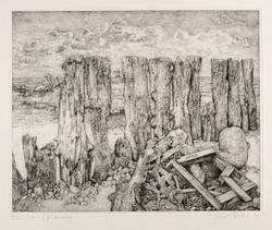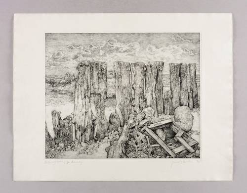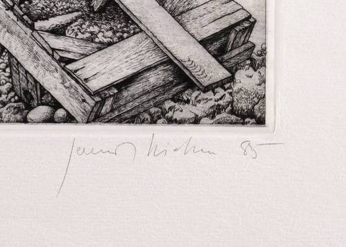 1985. Radierung / Kaltnadel, in Schwarz, auf weichem chamois Weißenborn. – Originale Künstlergrafik, von Gerenot Richter. – Auflage Exemplar Nr. VII/X. – 29,1 x 35,8 cm (Platte), 38 x 50 cm (Blatt), 28,6 x 35,3 cm (Darstellung / Druckbild).