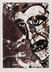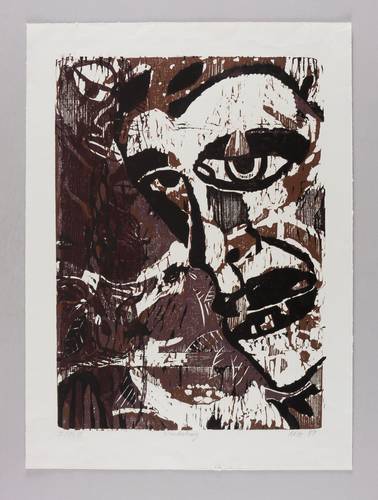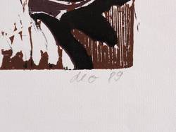 1989. Farbholzschnitt, in Hellbraun, Dunkelbraun & Schwarz, auf leichtem hellchamois Maschinenbütten. – Originale Künstlergrafik, von Leonore Adler. – Auflage Exemplar Nr. 1/15. – 45,5 x 32,6 cm (Darstellung / Druckbild), 55 x 40 cm (Blatt).