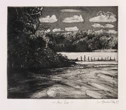 Rechts unten in Bleistift signiert und datiert: ″U. Hachulla 84″. Mittig Titel: ″Am See″. Wasserzeichnen der Hahnemühle. – Sehr guter Zustand.