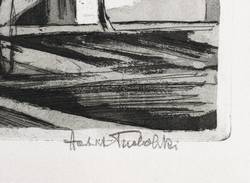 1961. Radierung / Strichätzung & Aquatinta, in Schwarz, auf weißem Velin. – Originale Künstlergrafik, von Herbert Tucholski. – Auflage 150 Exemplare. – 16,8 x 26,7 cm (Darstellung / Druckbild), 17,9 x 27,6 cm (Platte), 21 x 31 cm (Blatt).